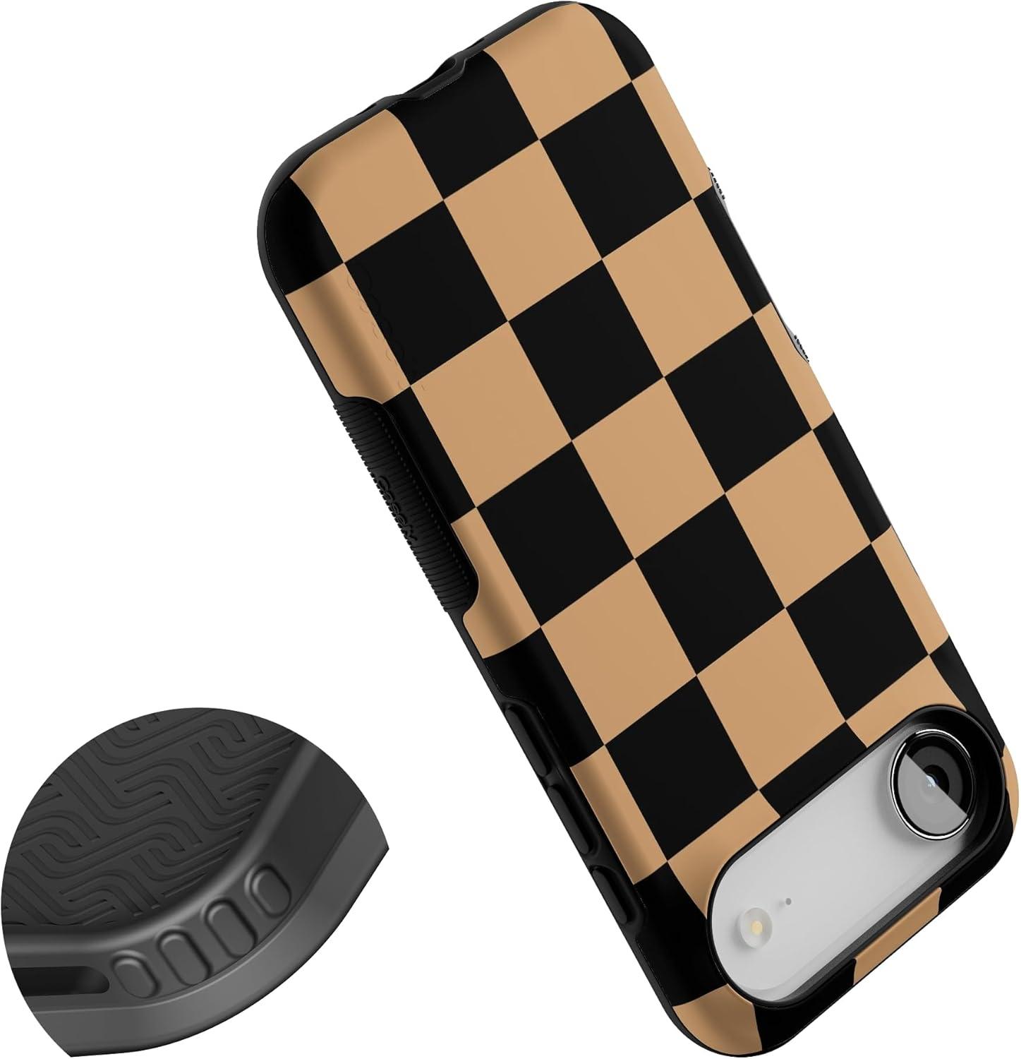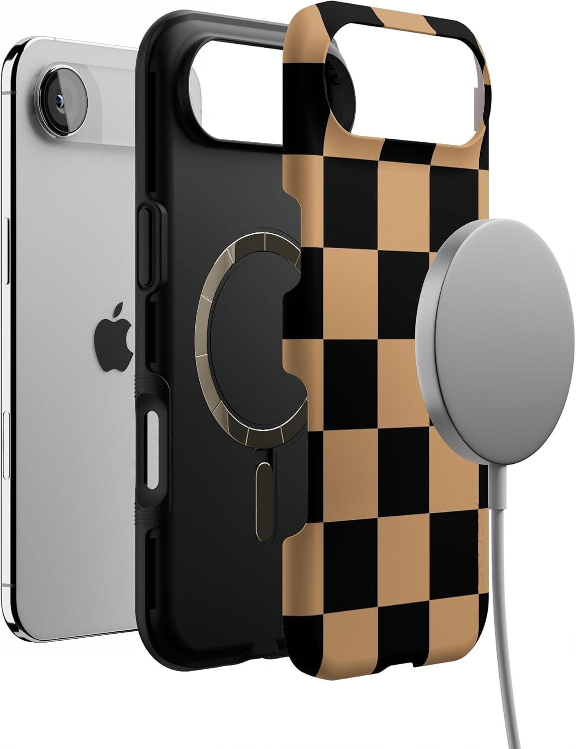 Casely iPhone 17 Air Case | Fit Check | Black & Brown Checkerboard | Bold Protective Design | MagSafe Compatible Design