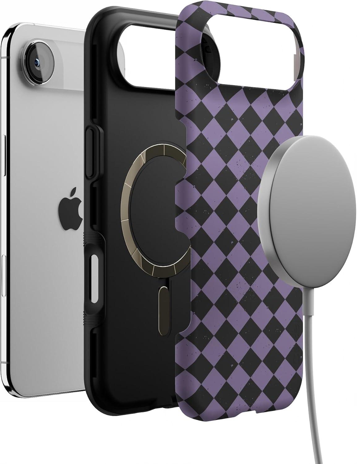Casely iPhone 17 Air Case | Harlequin Midnight Diamond | Black and Purple | Bold Protective Design | MagSafe Compatible Design