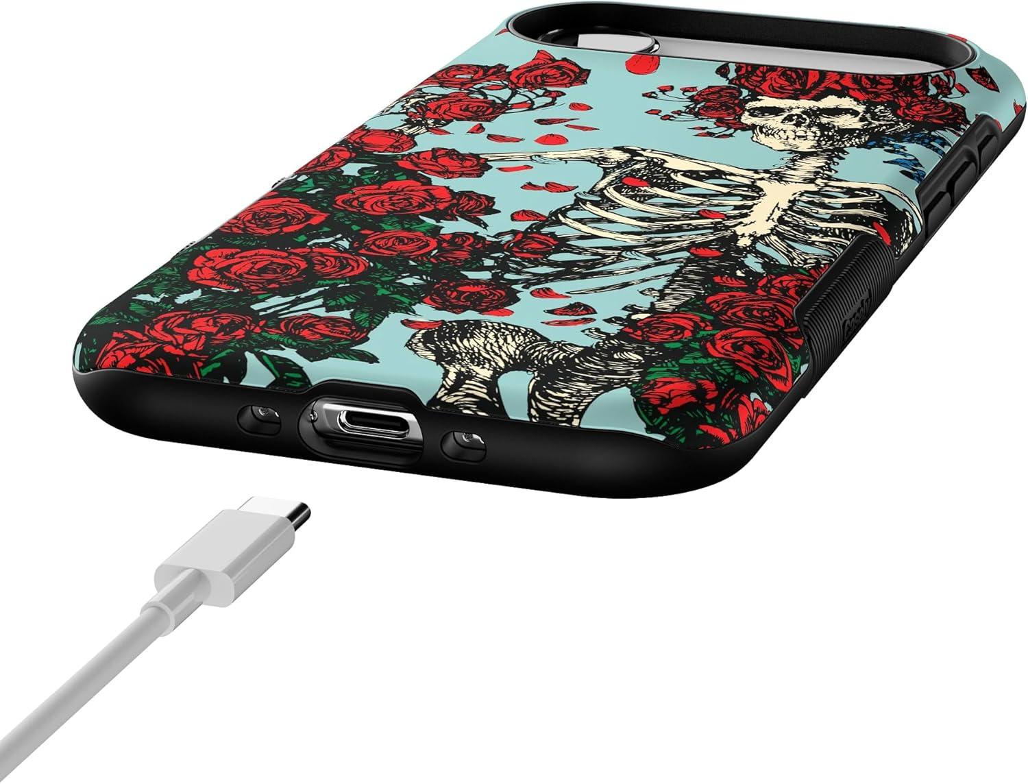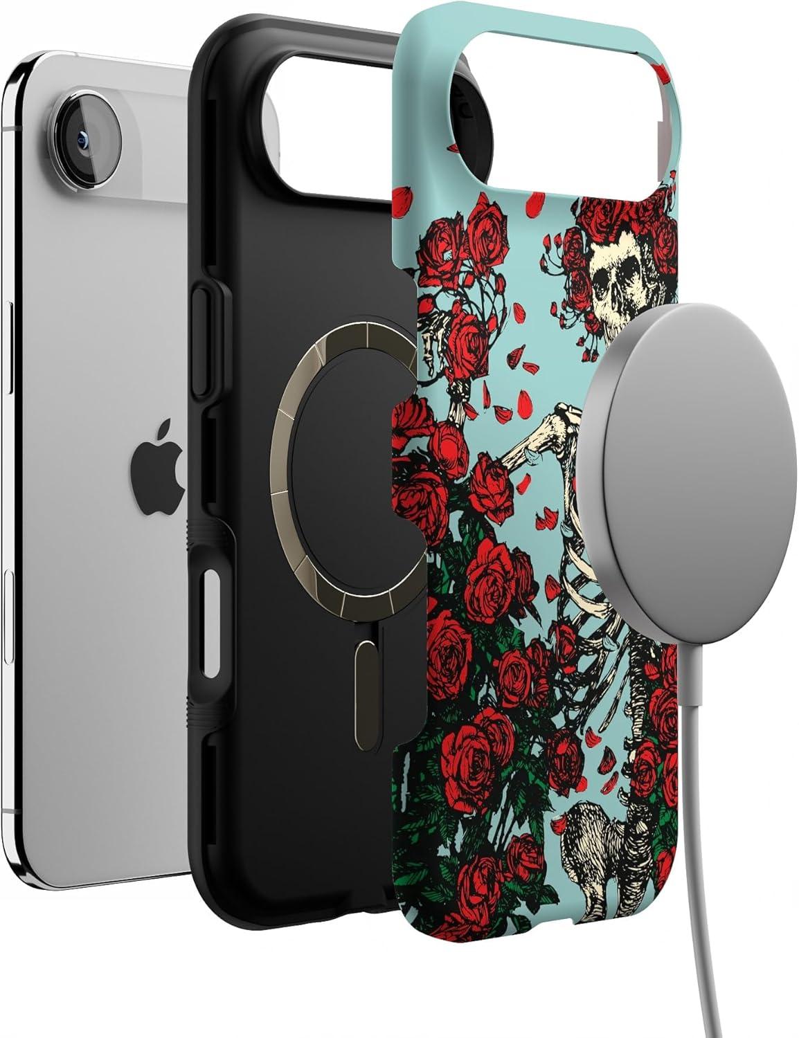 Casely iPhone 17 Air Case | Taupe on Nude | Compatible with MagSafe | Bold Protective Design(Forever Grateful | Grateful Dead Skeleton Floral)
