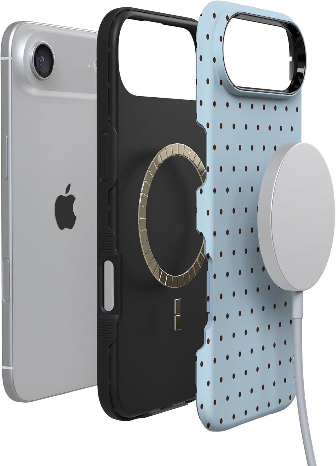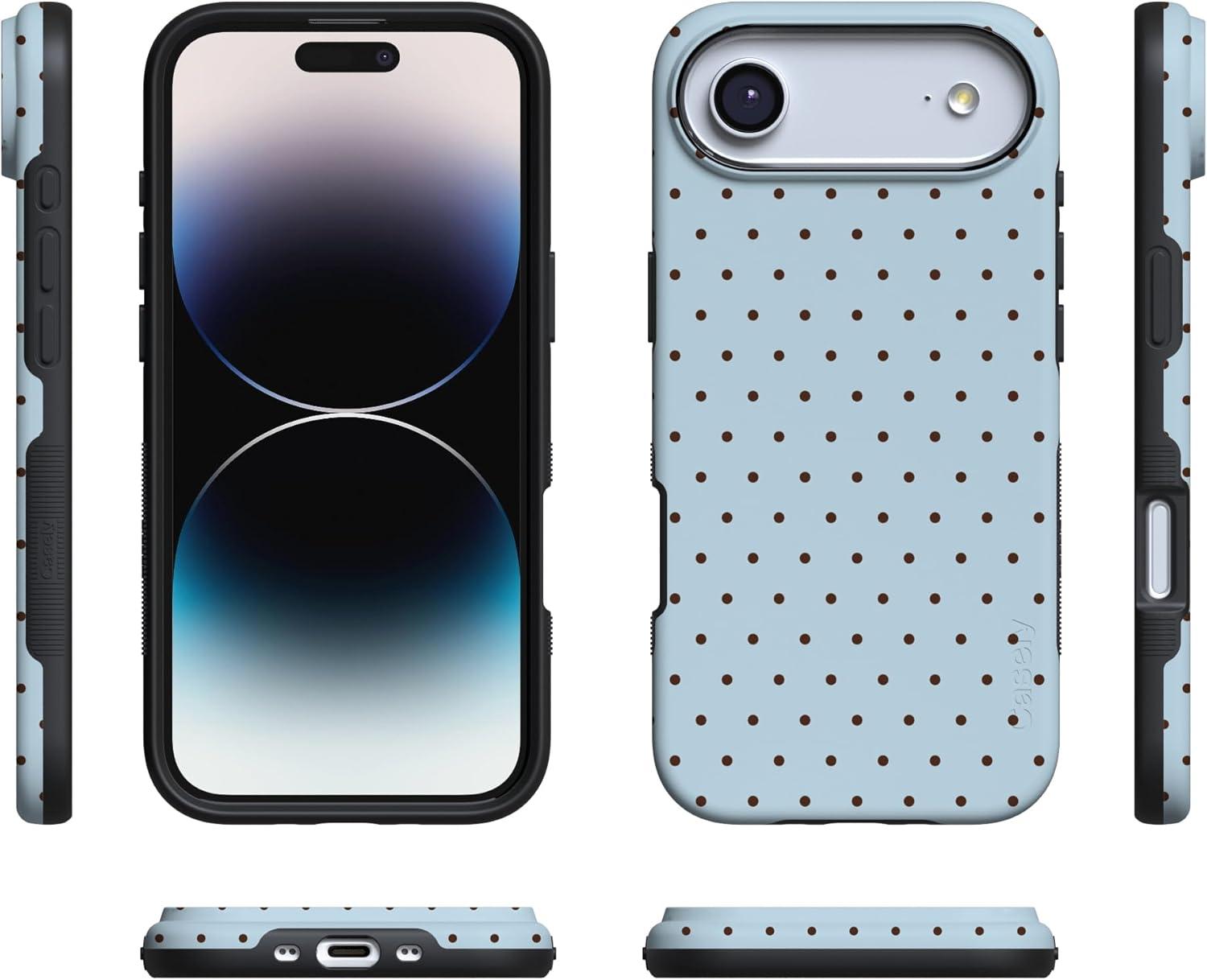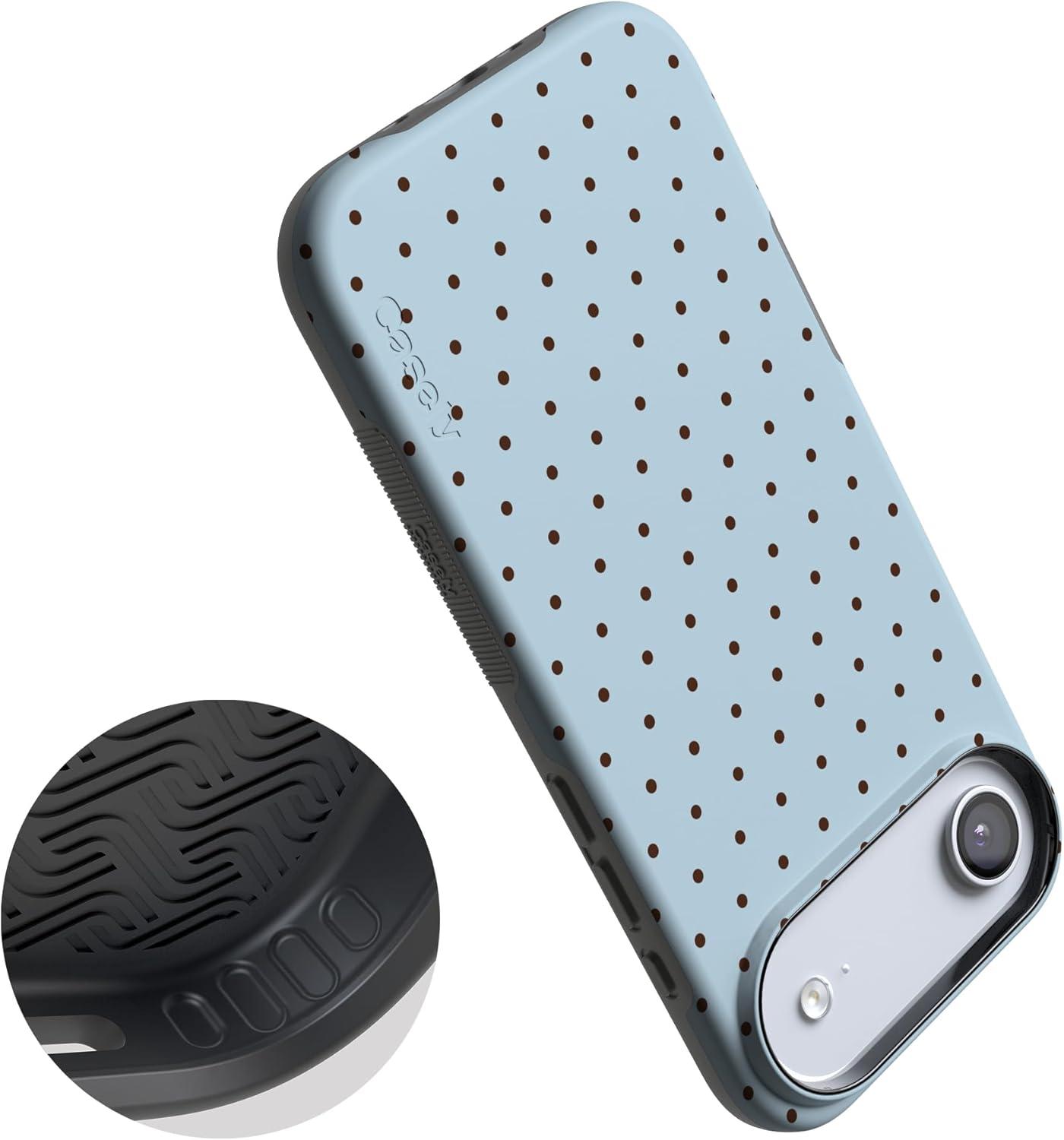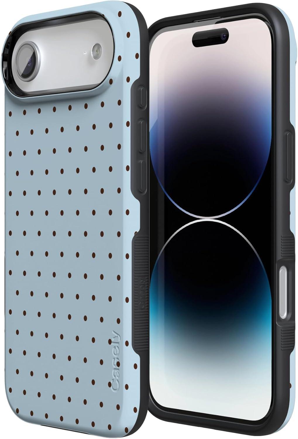 Casely iPhone 17 Air Case | Taupe on Nude | Compatible with MagSafe | Bold Protective Design(On the Dot | Blue Polka Dot)