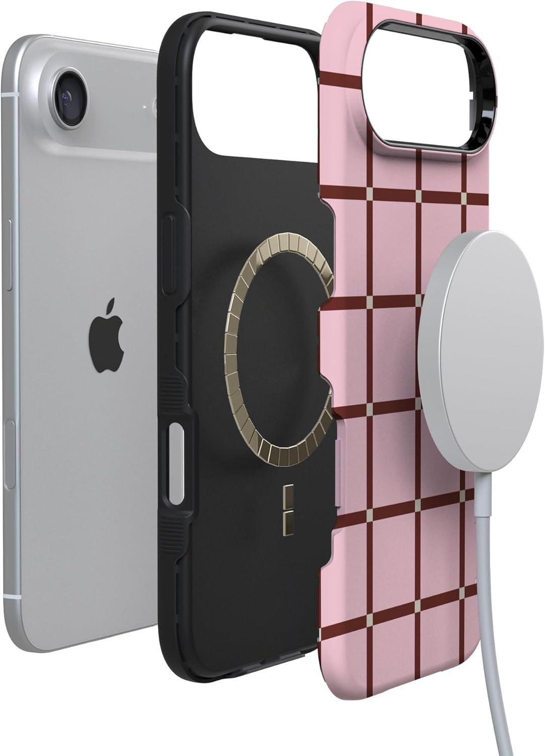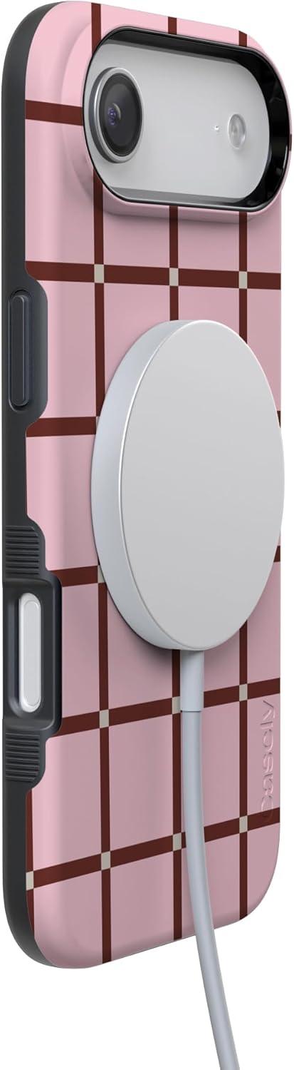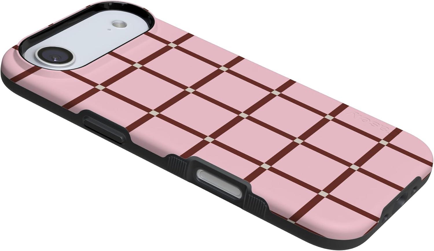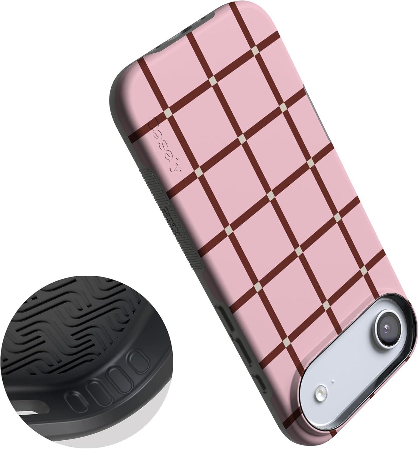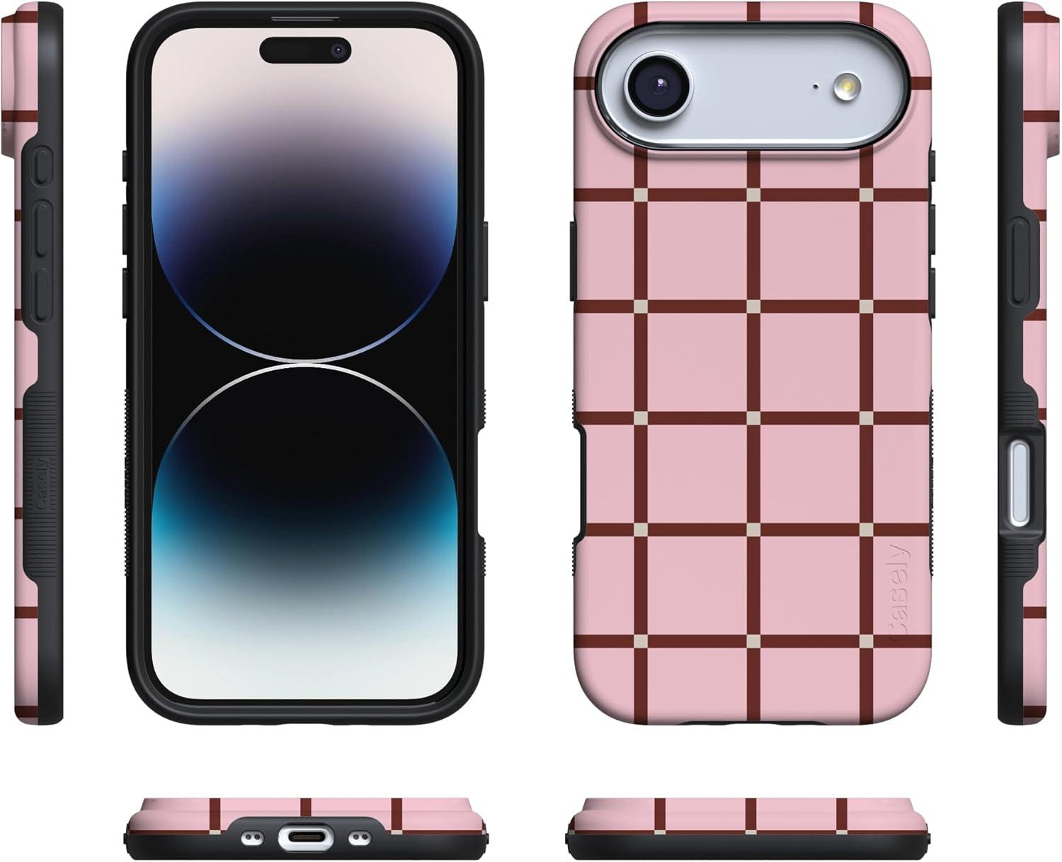 Casely iPhone 17 Air Case | Taupe on Nude | Compatible with MagSafe | Bold Protective Design(Uptown Gridlock | Pink Checkerboard)