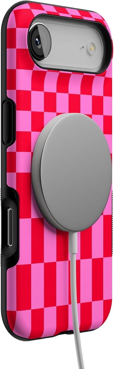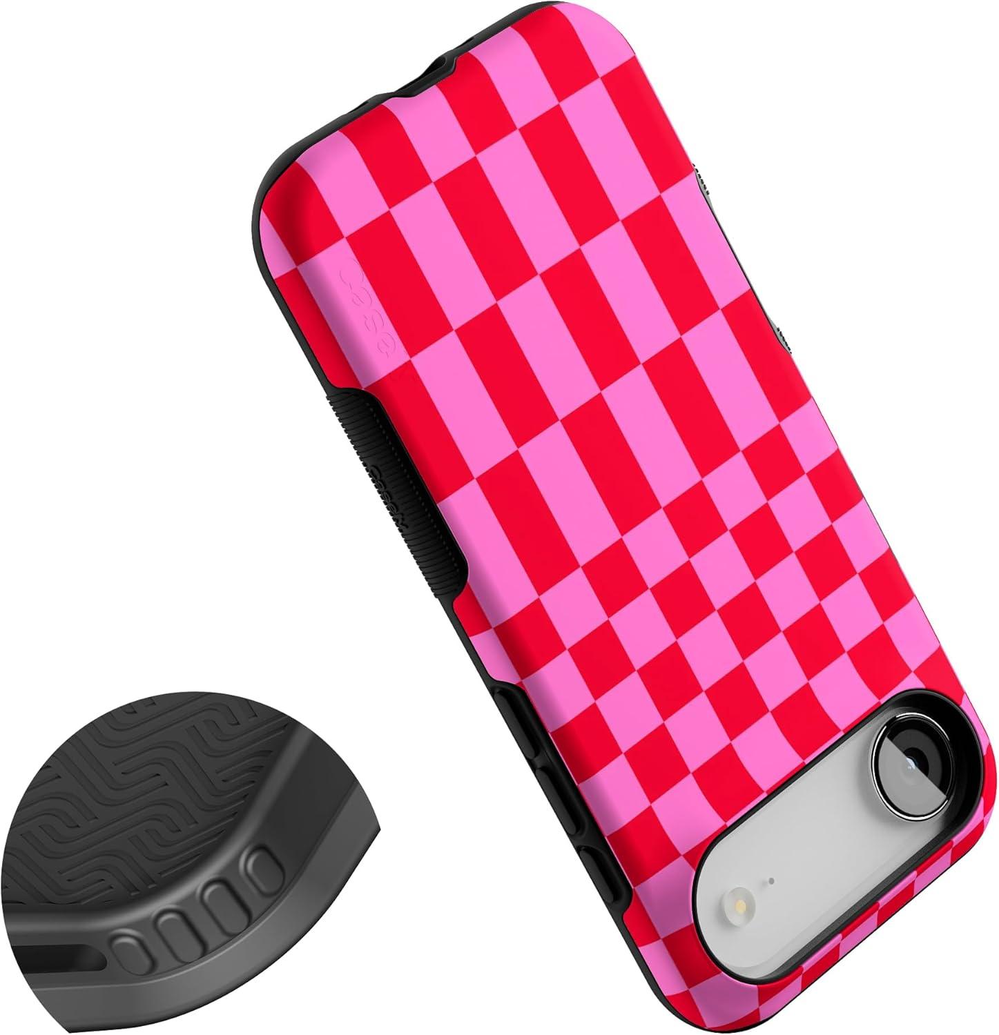 Casely iPhone 17 Air Case | Taupe on Nude | Compatible with MagSafe | Bold Protective Design(Vibe Check | Pink Checkerboard)