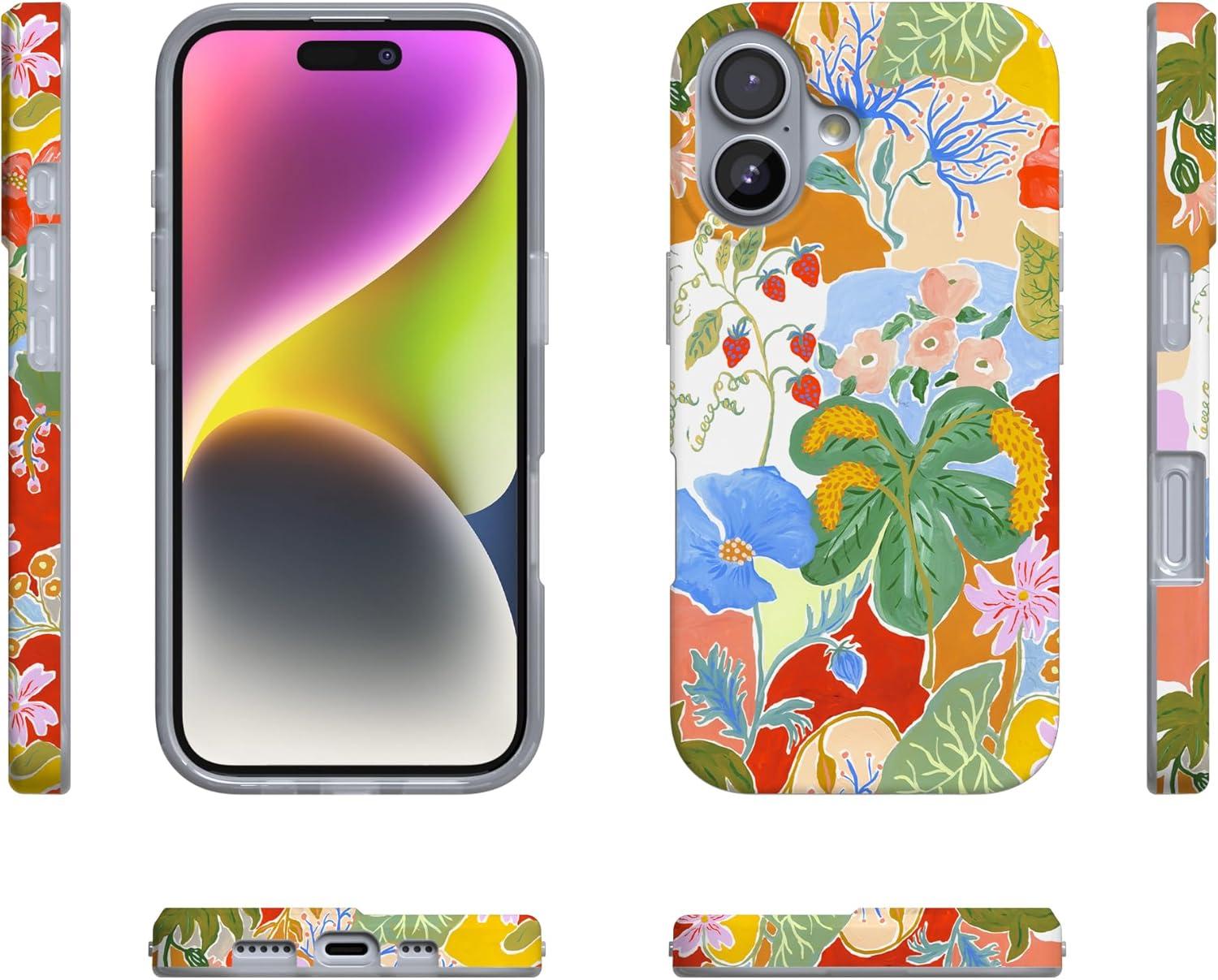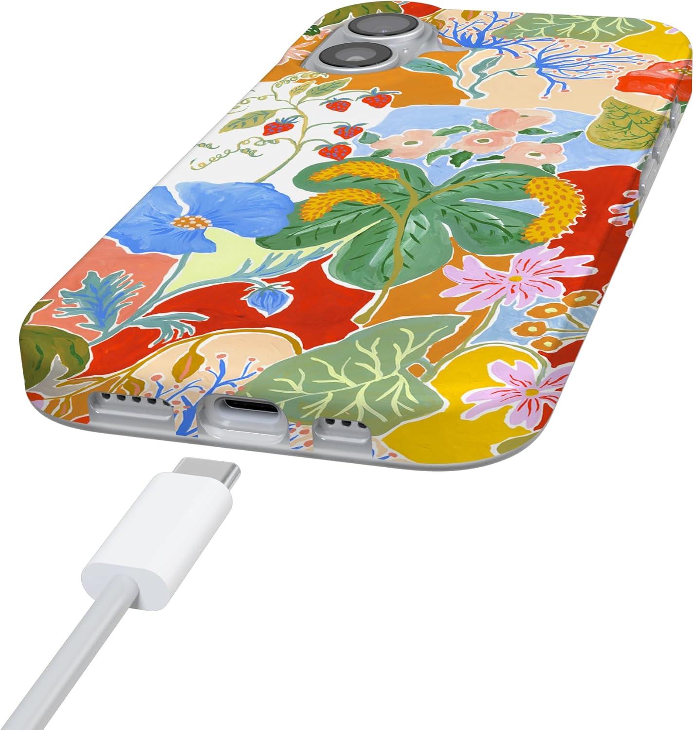 Casely iPhone 17 Case | Full Bloom | Navy Floral | Compatible with MagSafe | Classic Ultra Thin Design(Botanical Blooms | Floral Patchwork)