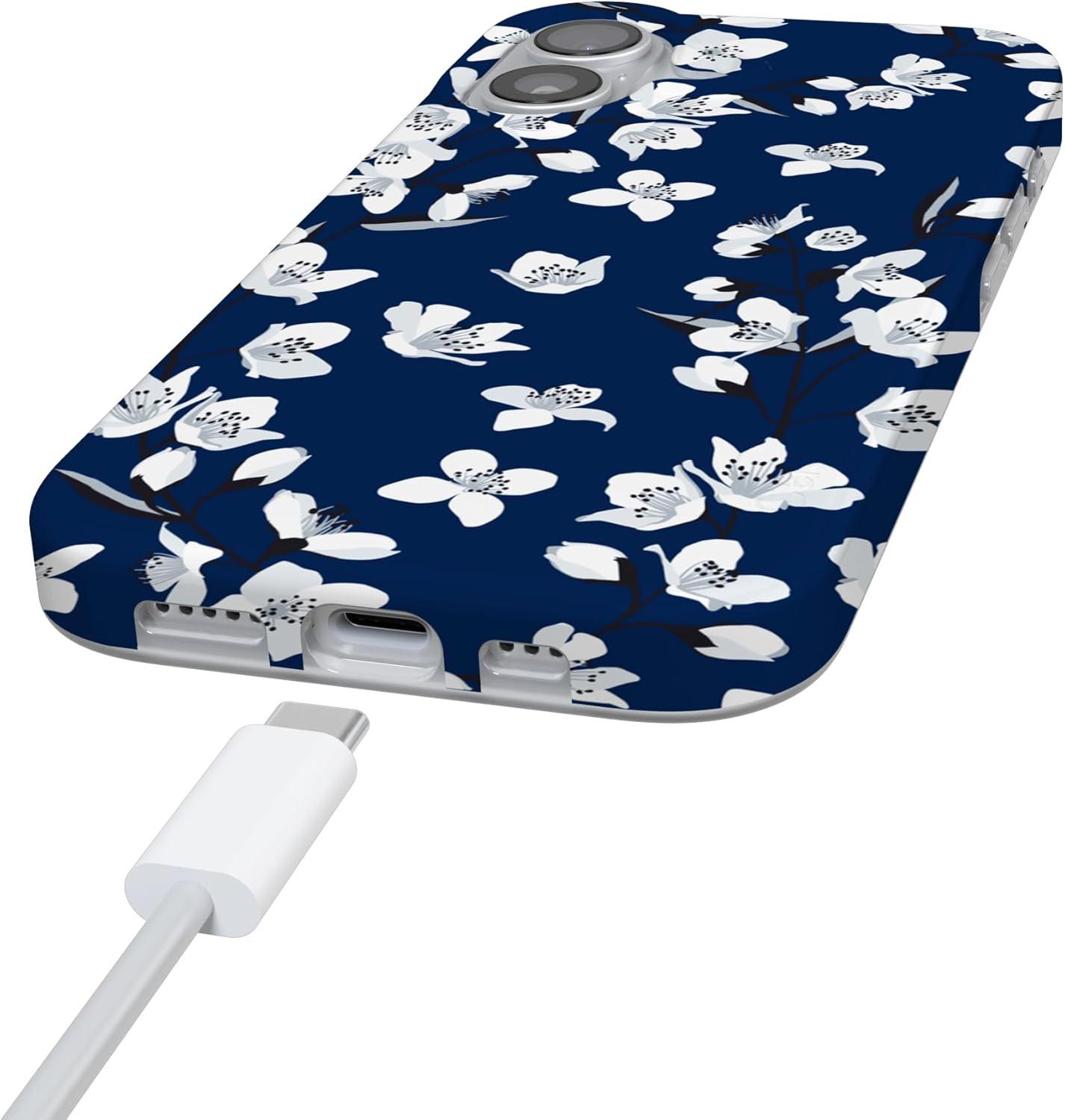 Casely iPhone 17 Case | Full Bloom | Navy Floral | Compatible with MagSafe | Classic Ultra Thin Design(Floral Forest | Navy Cherry Blossom Floral)