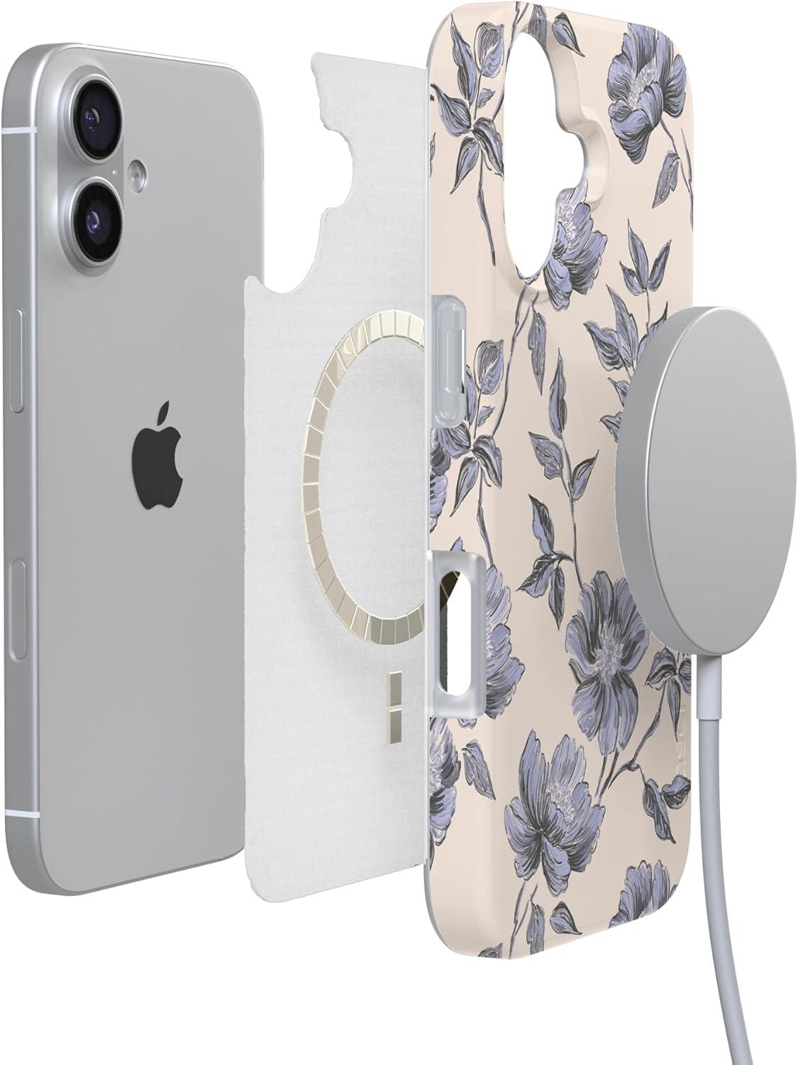 Casely iPhone 17 Case | Full Bloom | Navy Floral | Compatible with MagSafe | Classic Ultra Thin Design(Ink & Iris | Vintage Floral)
