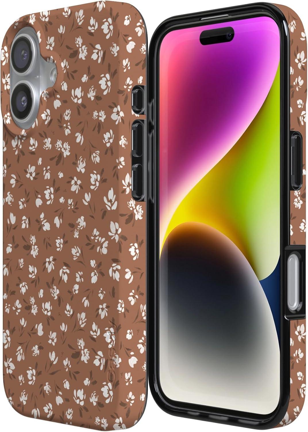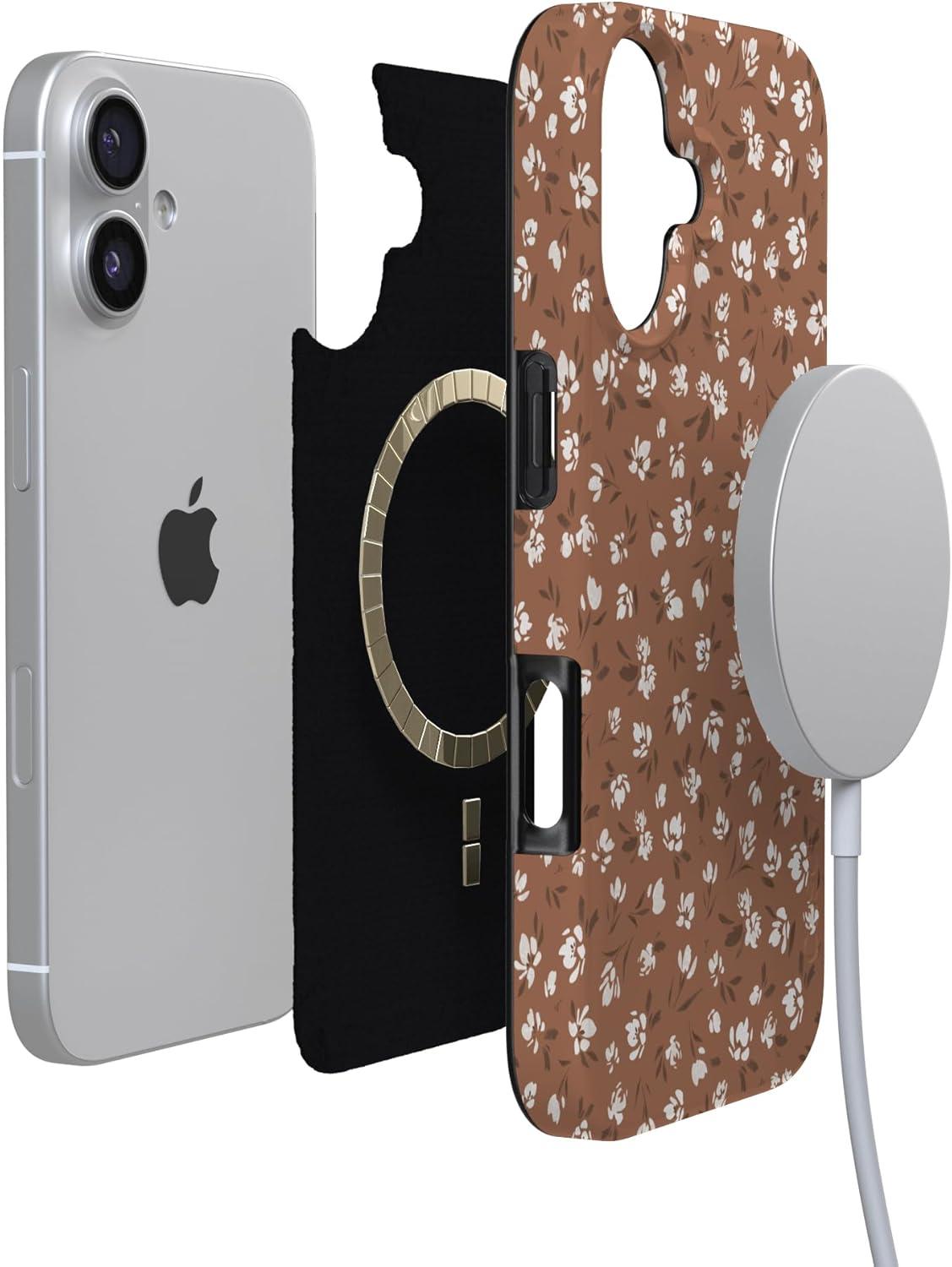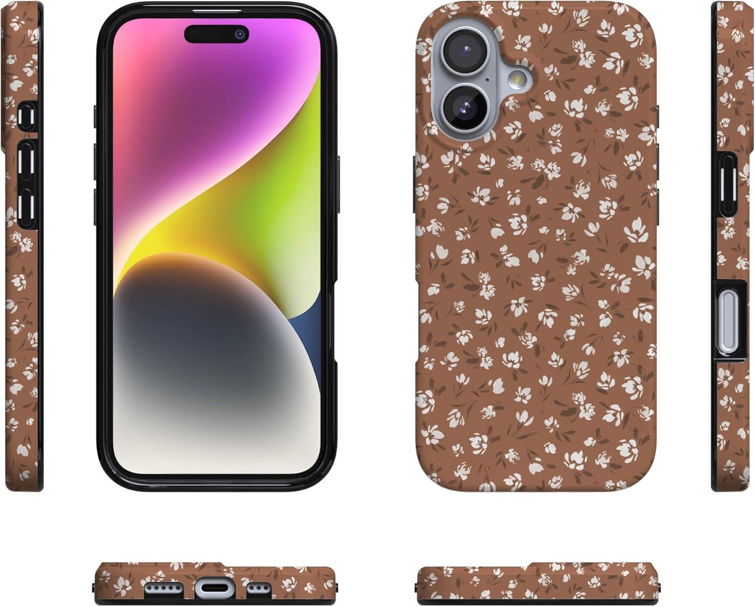 Casely iPhone 17 Case | Full Bloom | Navy Floral | Compatible with MagSafe | Classic Ultra Thin Design(Mocha Meadow | Tiny Flowers)