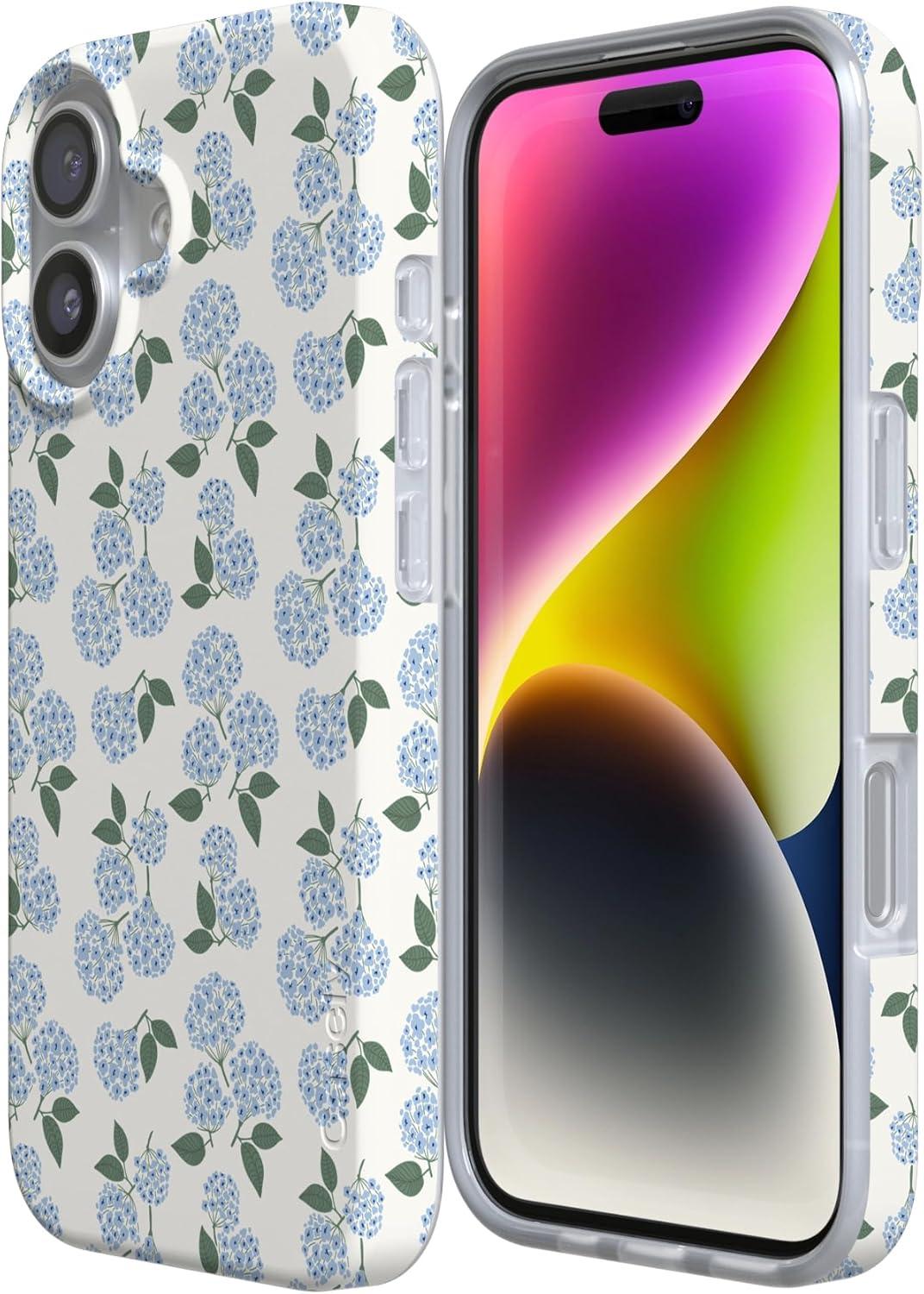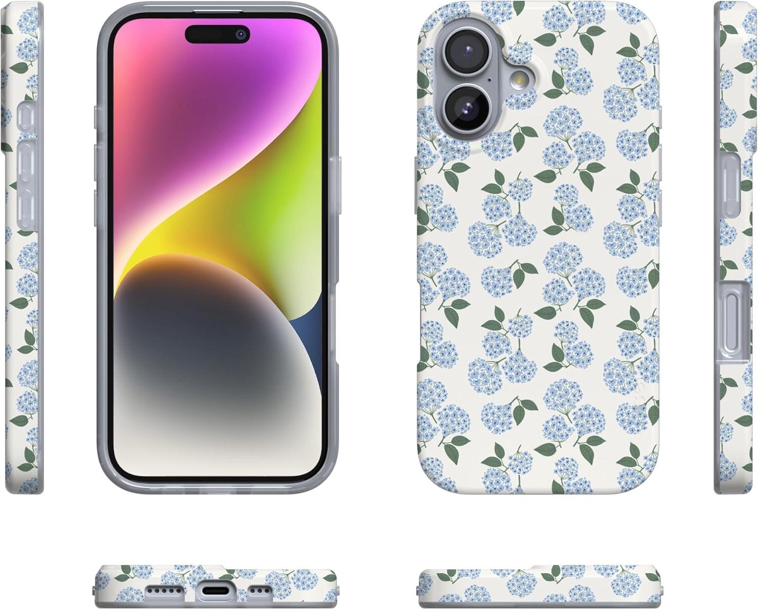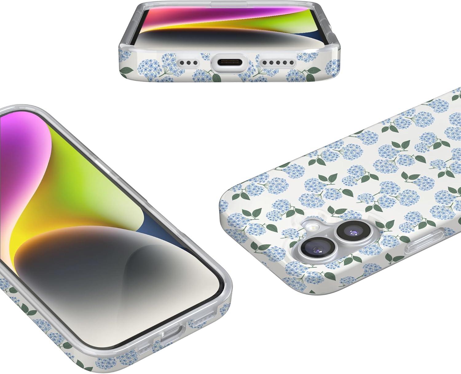 Casely iPhone 17 Case | Full Bloom | Navy Floral | Compatible with MagSafe | Classic Ultra Thin Design(Nantucket Cottage | Blue Hydrangea)