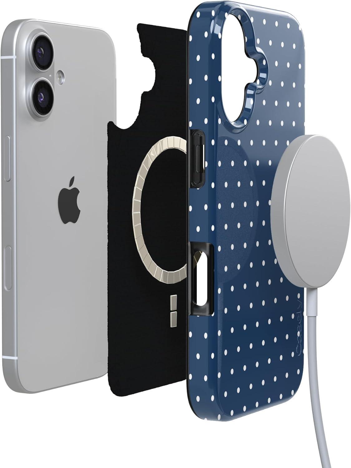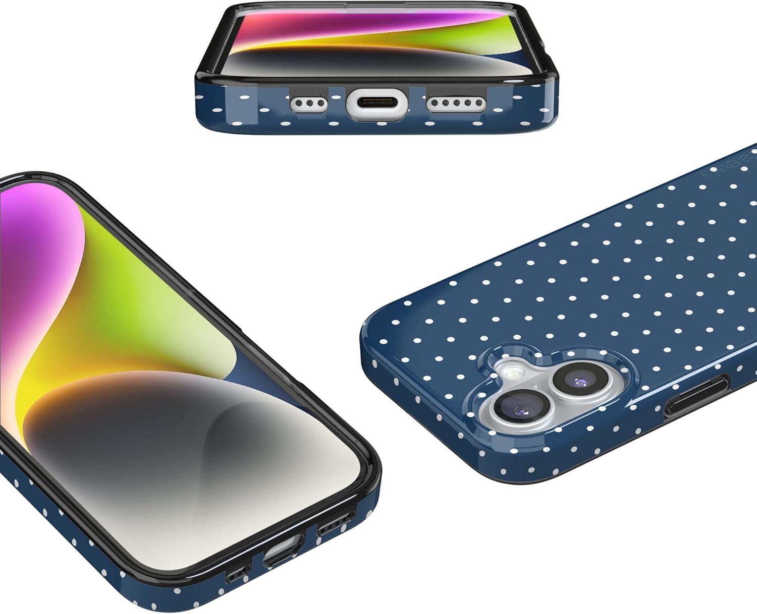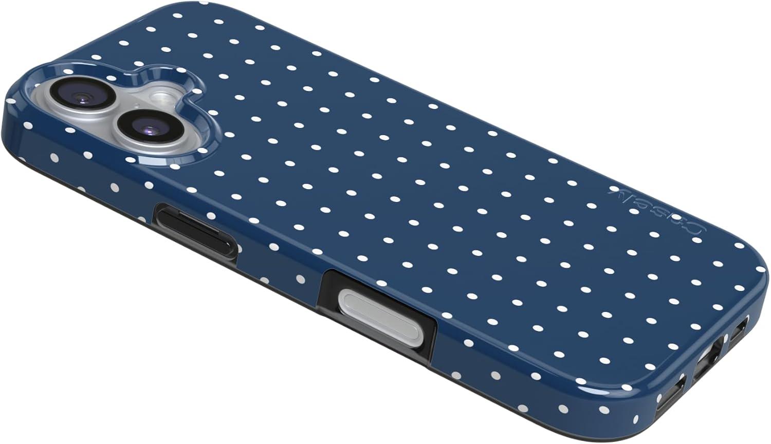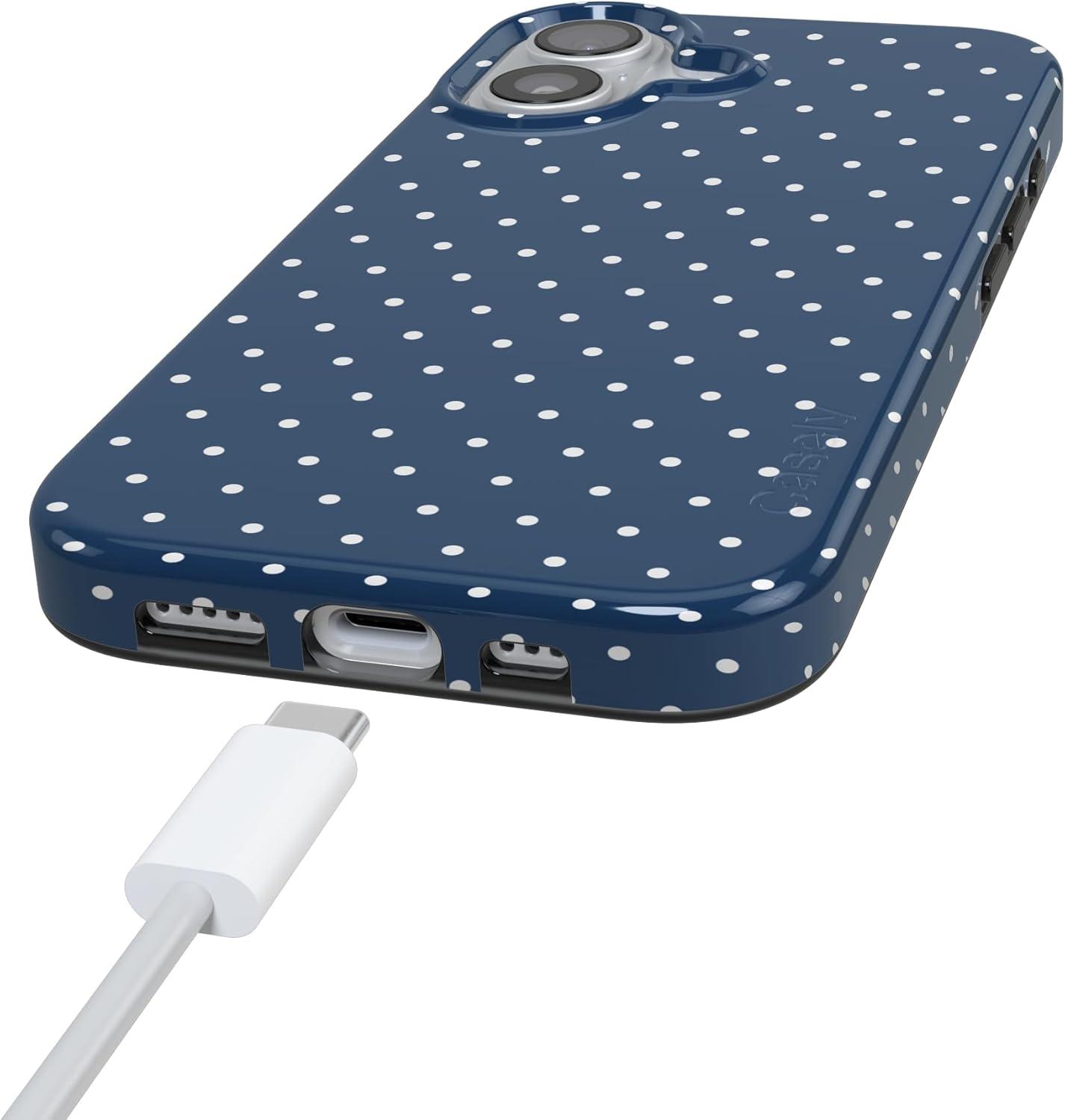 Casely iPhone 17 Case | Full Bloom | Navy Floral | Compatible with MagSafe | Classic Ultra Thin Design(On the Dot | Navy Polka Dot)