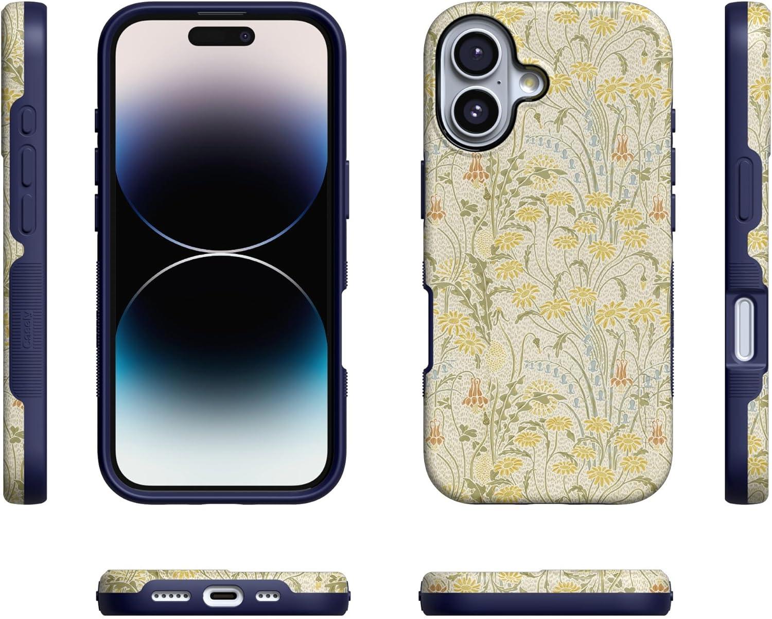 Casely iPhone 17 Case | Into The Wild | White Snow Leopard | Bold Protective Design | Compatible with MagSafe(Boho Blooms | Golden Floral)