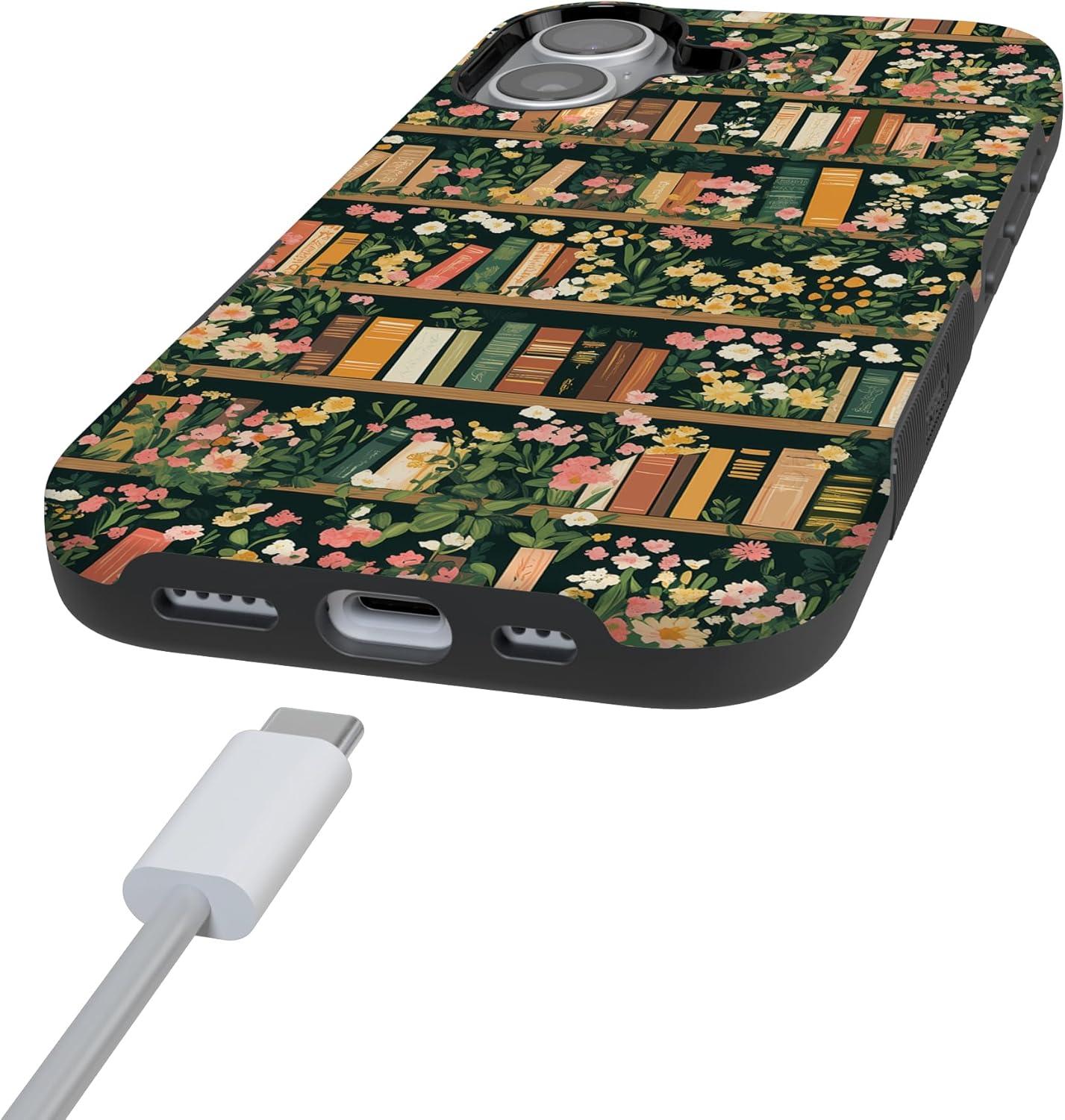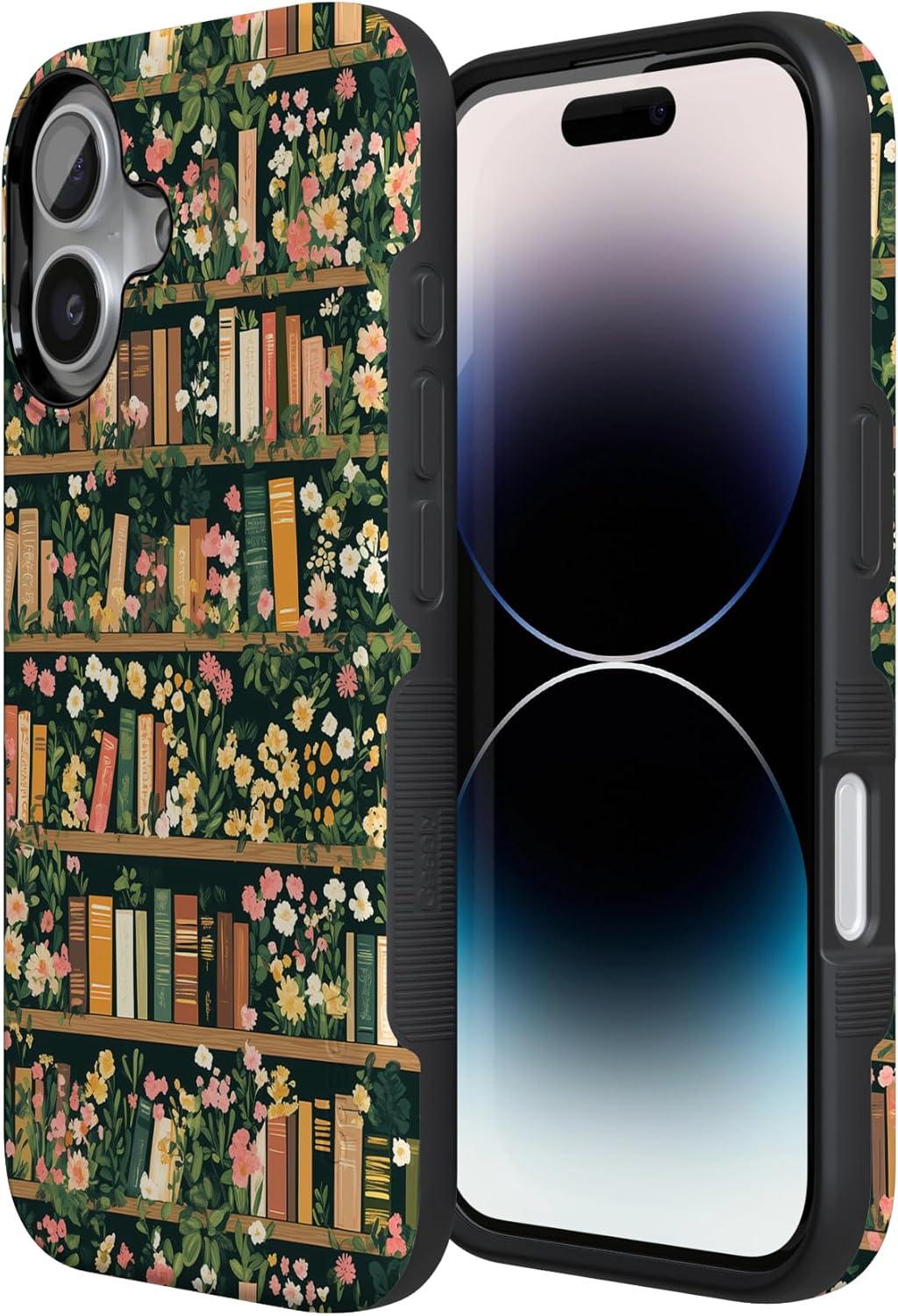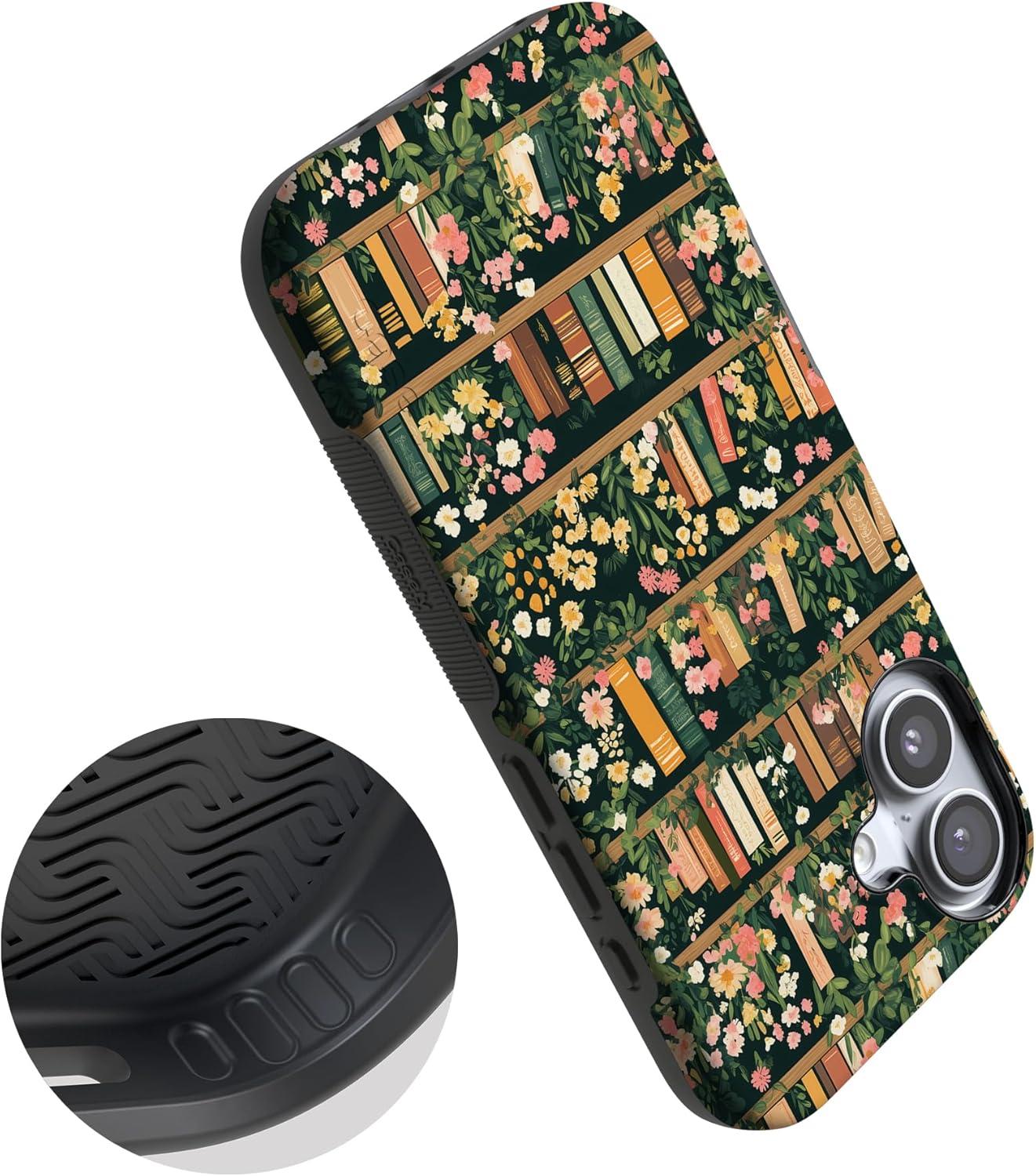 Casely iPhone 17 Case | Into The Wild | White Snow Leopard | Bold Protective Design | Compatible with MagSafe(Book Nook | Floral Library)