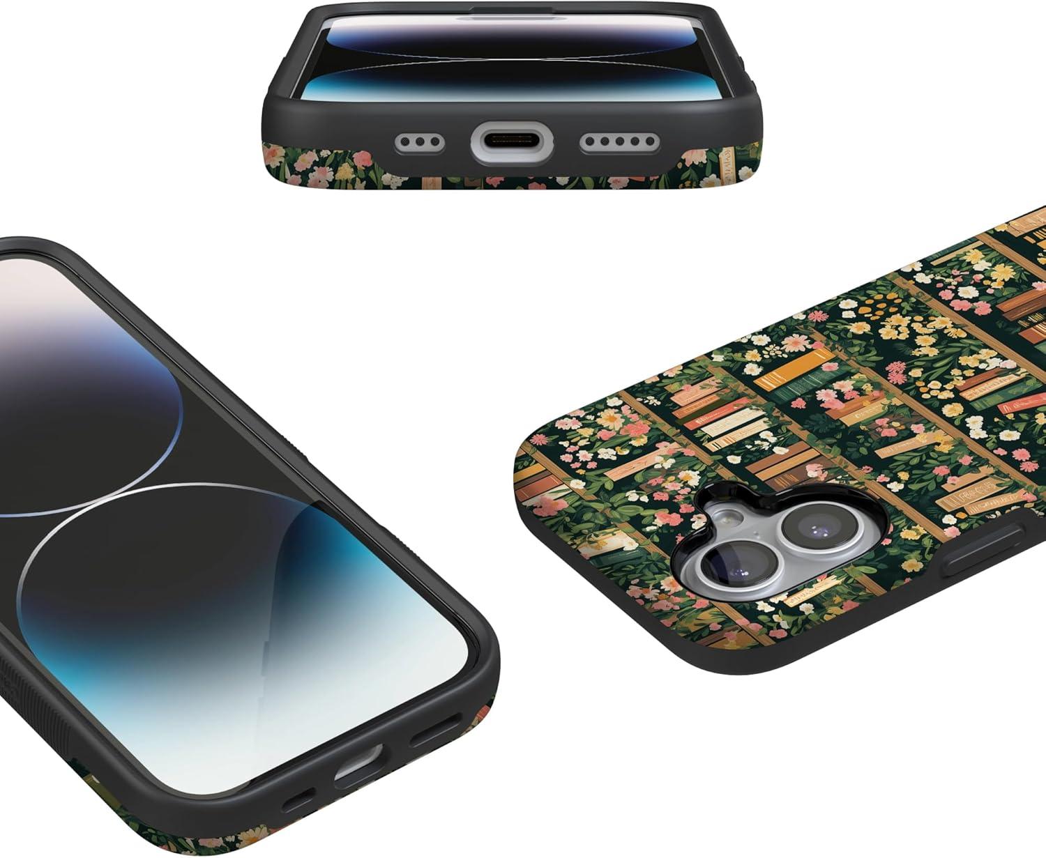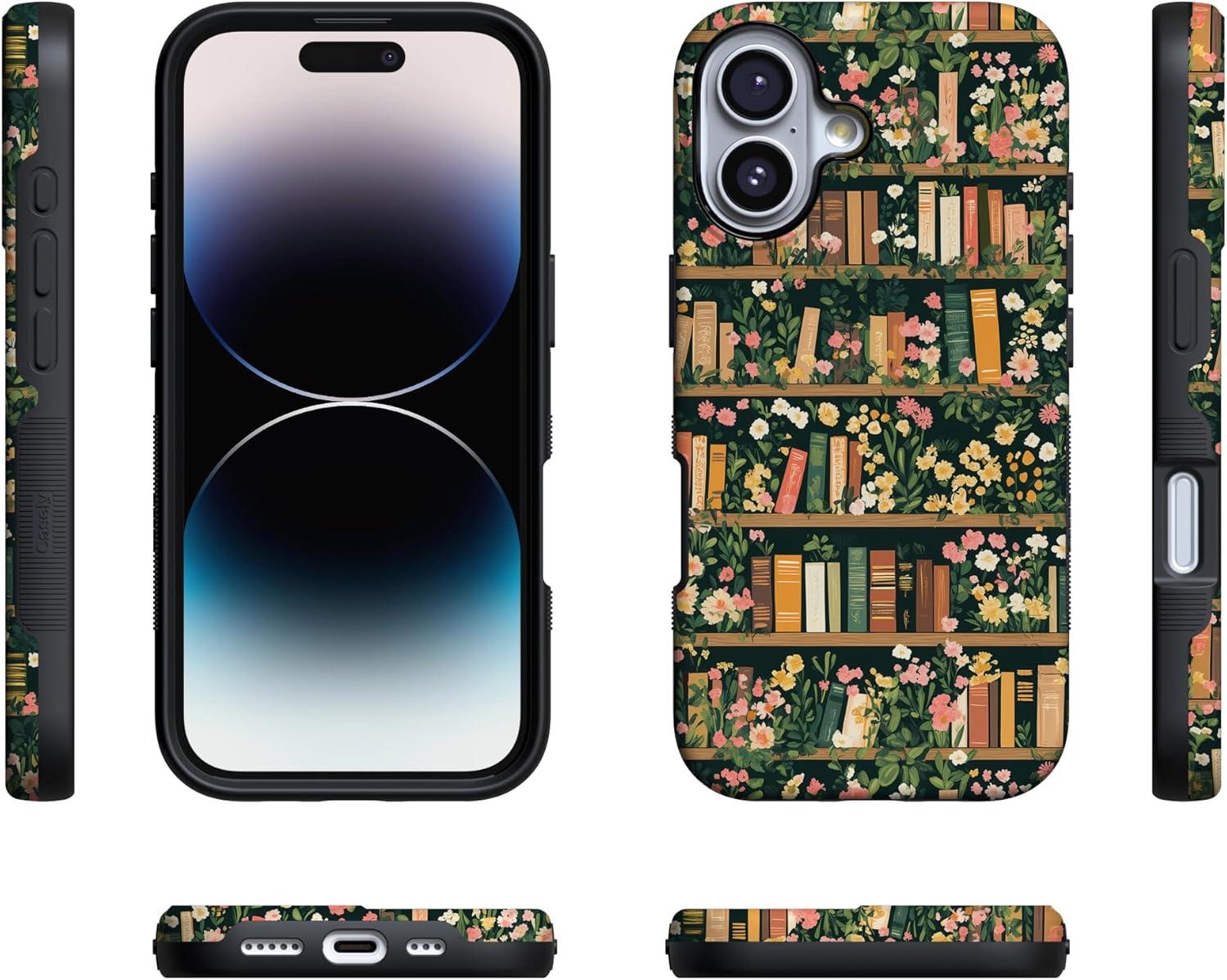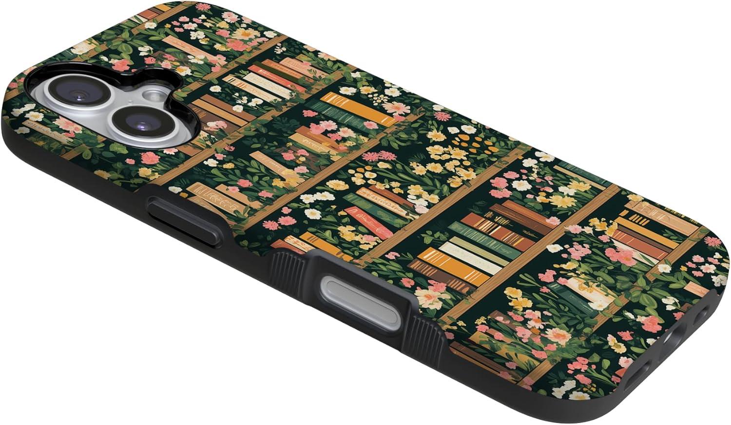 Casely iPhone 17 Case | Into The Wild | White Snow Leopard | Bold Protective Design | Compatible with MagSafe(Book Nook | Floral Library)