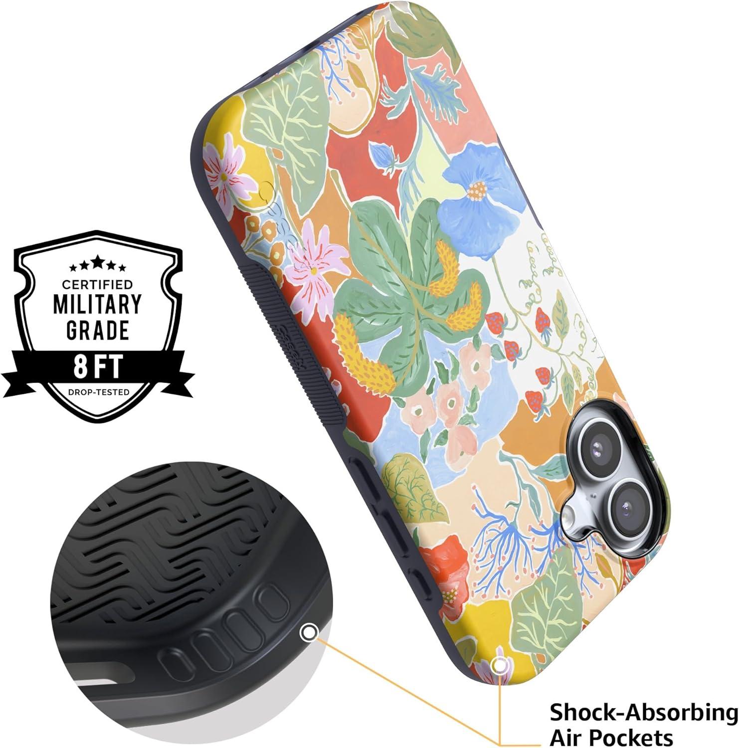 Casely iPhone 17 Case | Into The Wild | White Snow Leopard | Bold Protective Design | Compatible with MagSafe(Botanical Blooms | Floral Patchwork)