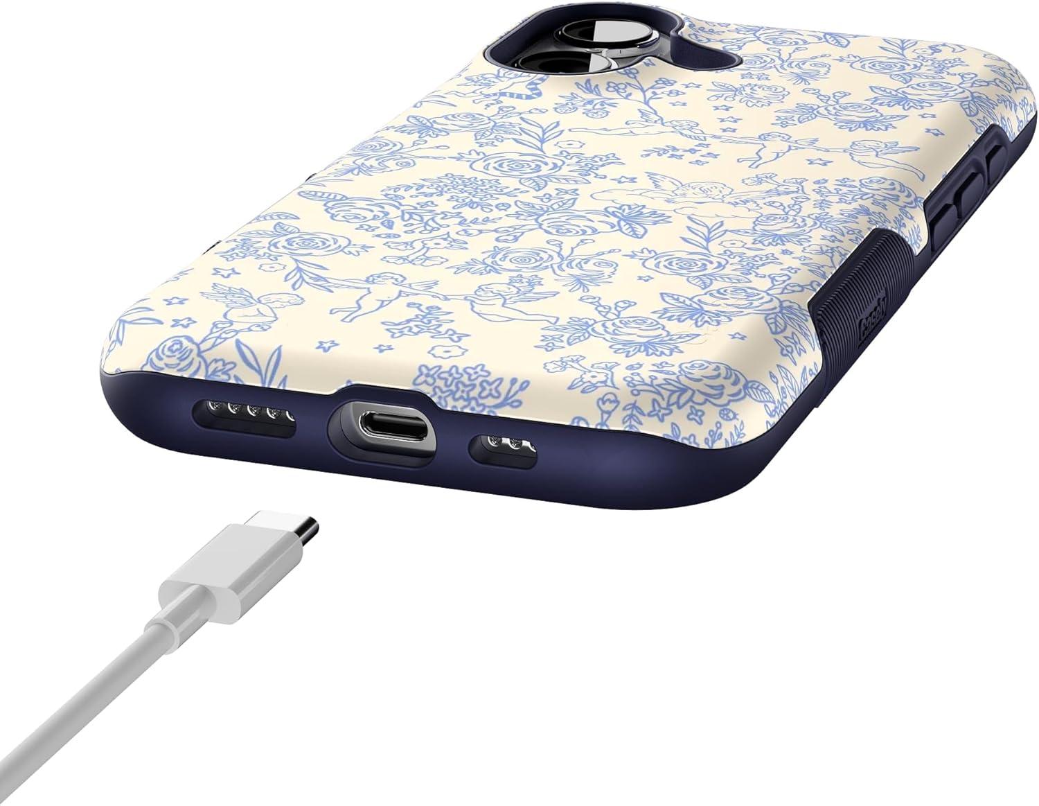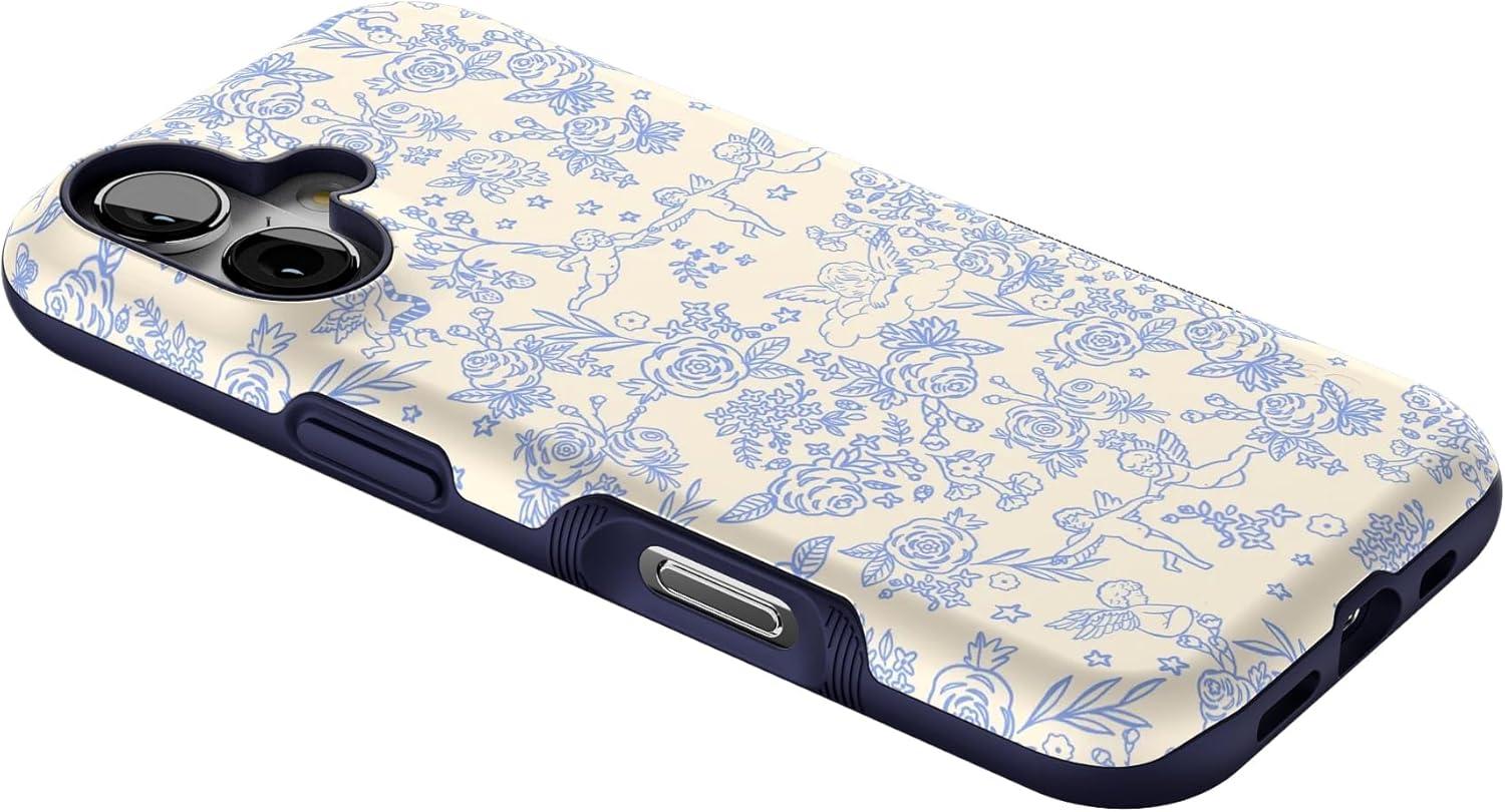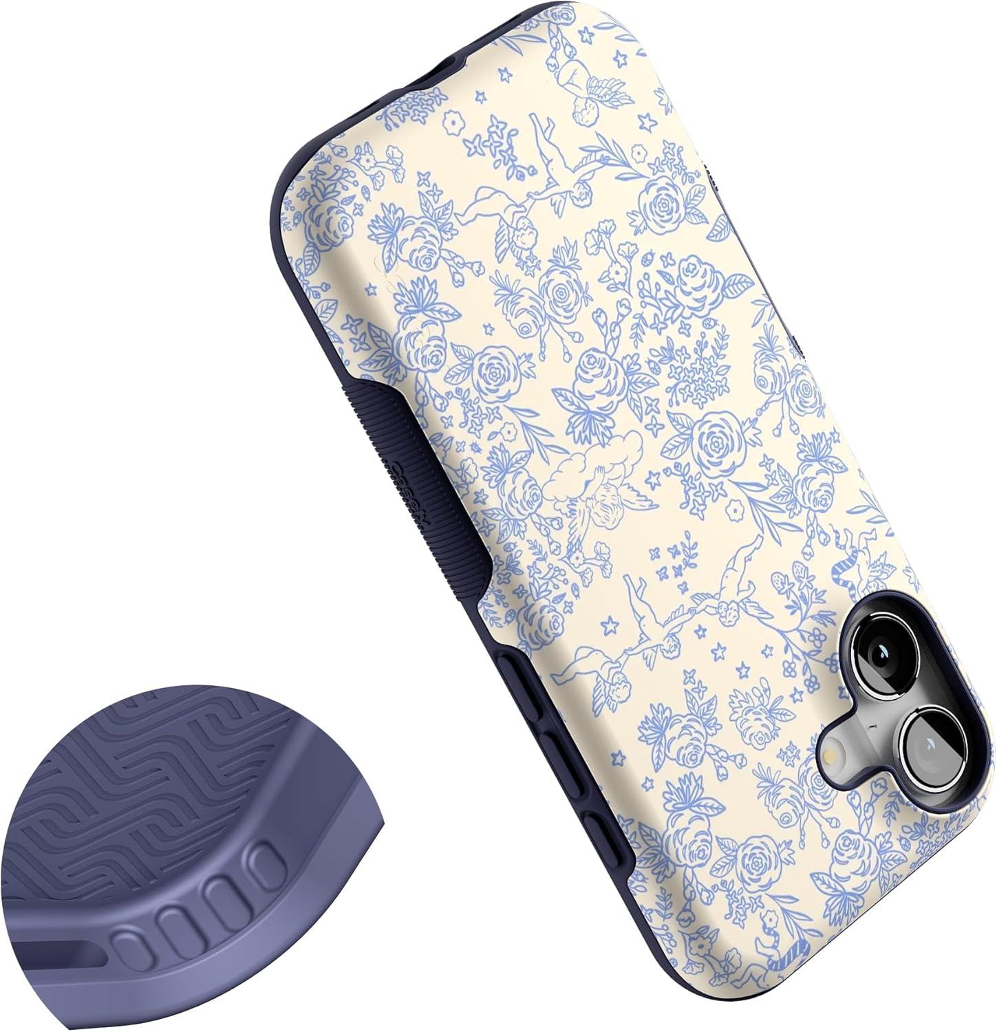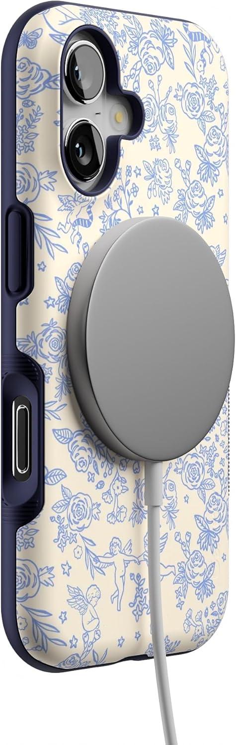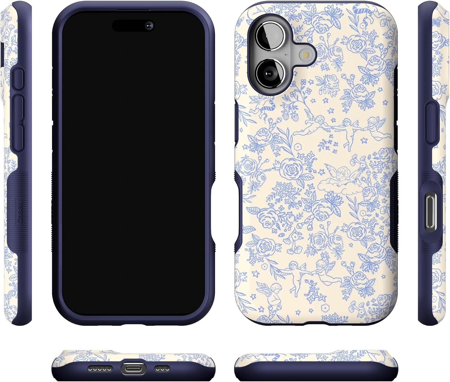 Casely iPhone 17 Case | Into The Wild | White Snow Leopard | Bold Protective Design | Compatible with MagSafe(Cupid’s Canvas | Periwinkle Floral)