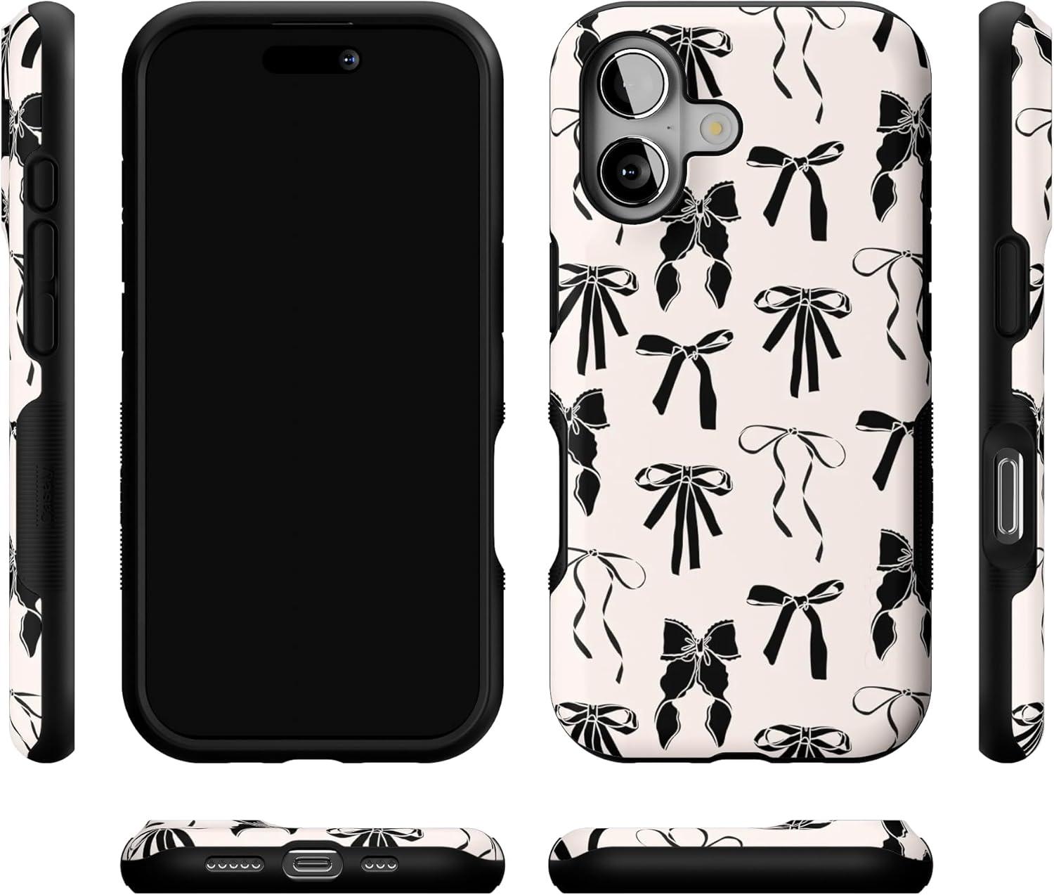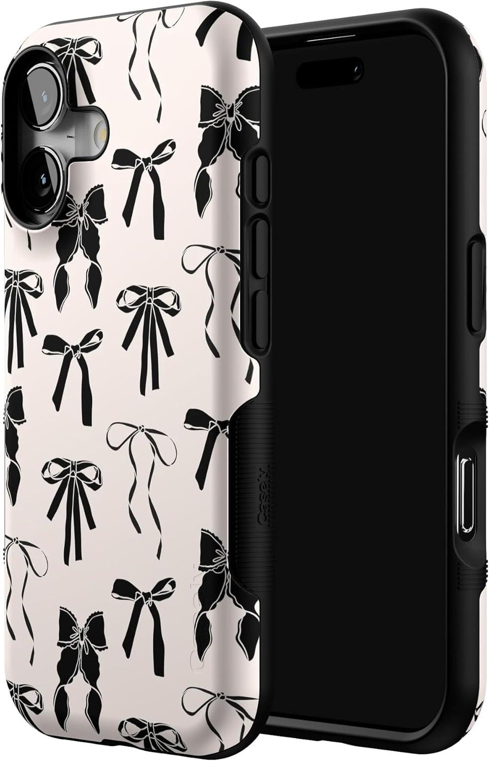 Casely iPhone 17 Case | Into The Wild | White Snow Leopard | Bold Protective Design | Compatible with MagSafe(Goth Girlie | Black Bows)