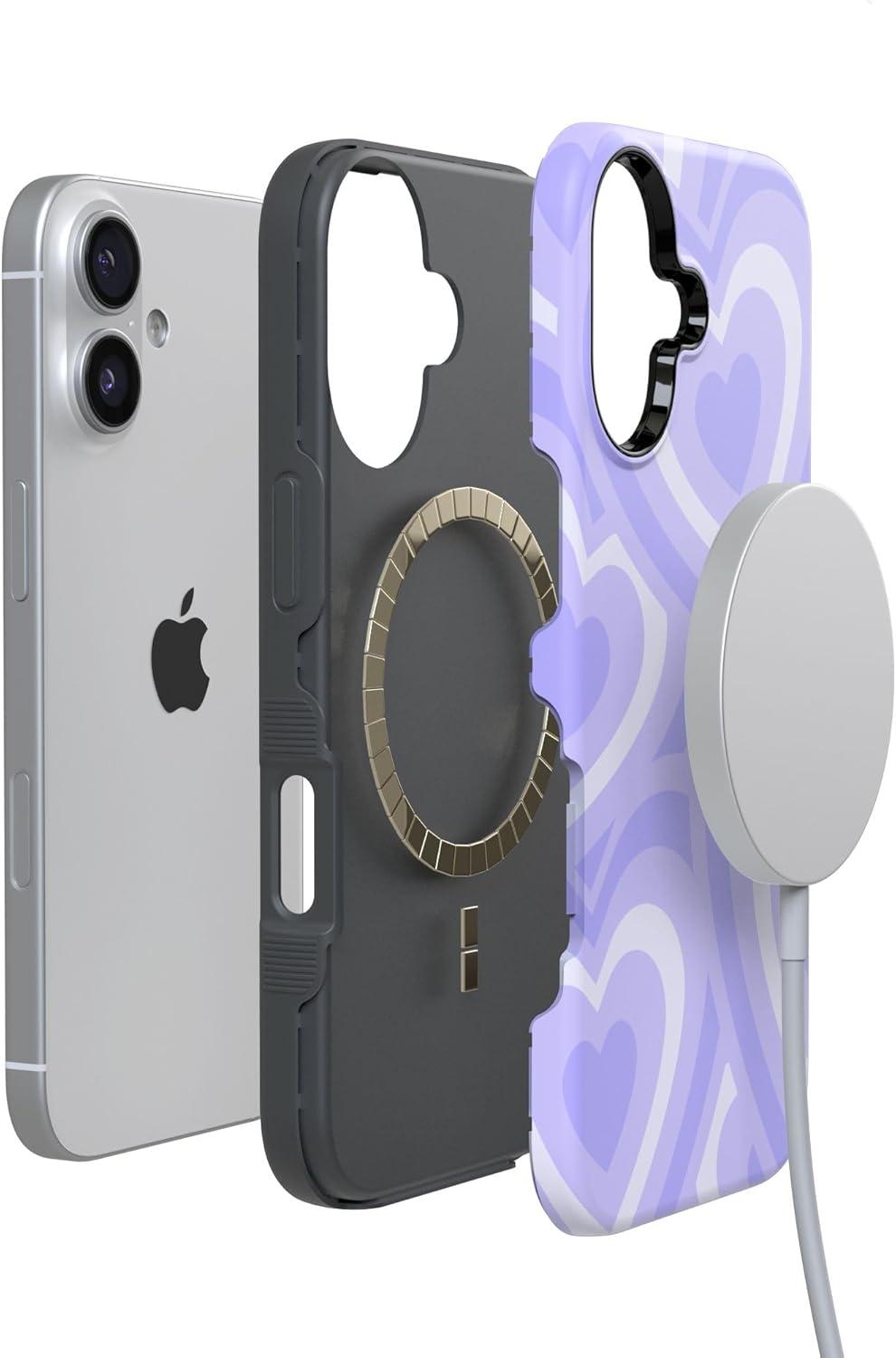 Casely iPhone 17 Case | Into The Wild | White Snow Leopard | Bold Protective Design | Compatible with MagSafe(Love Song | Lavender Heart)