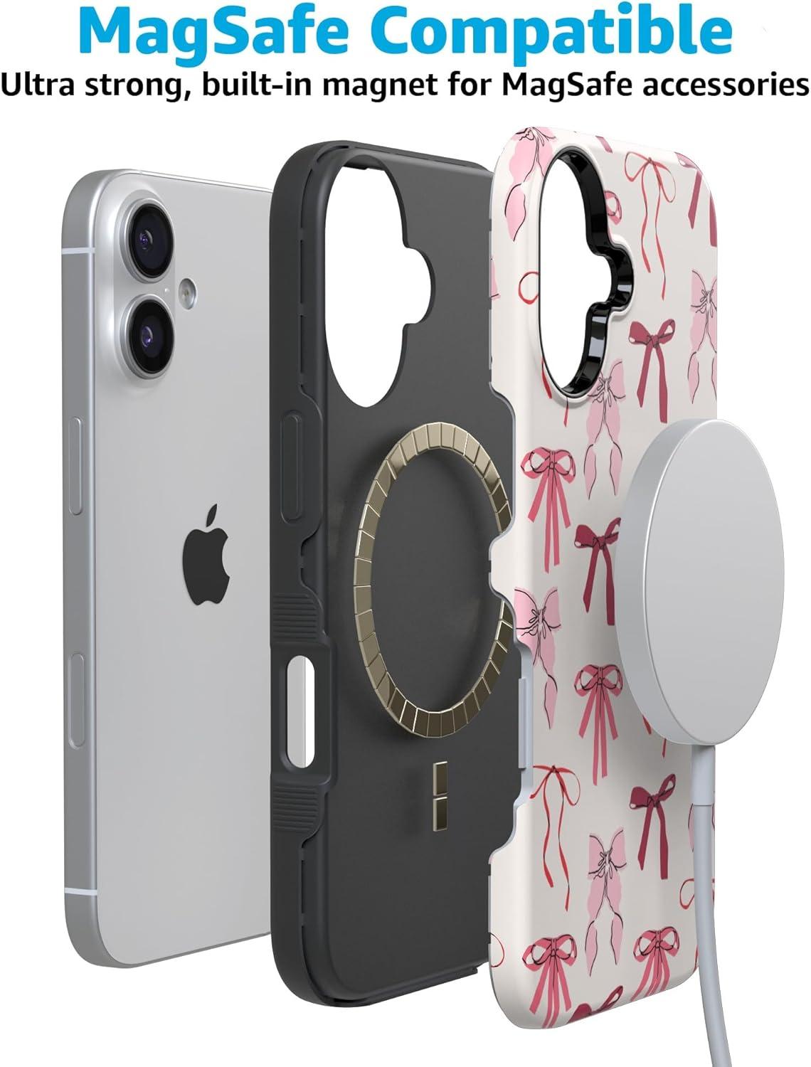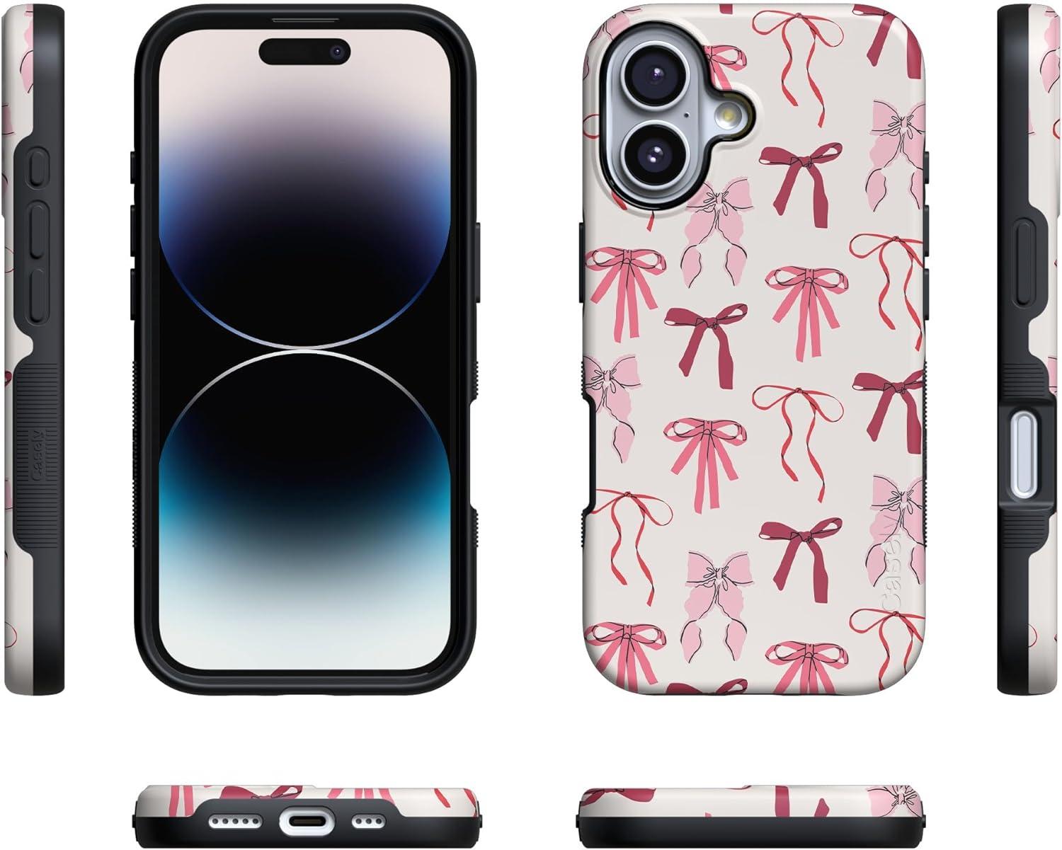 Casely iPhone 17 Case | Into The Wild | White Snow Leopard | Bold Protective Design | Compatible with MagSafe(Lover Girlie | Pink Bows)