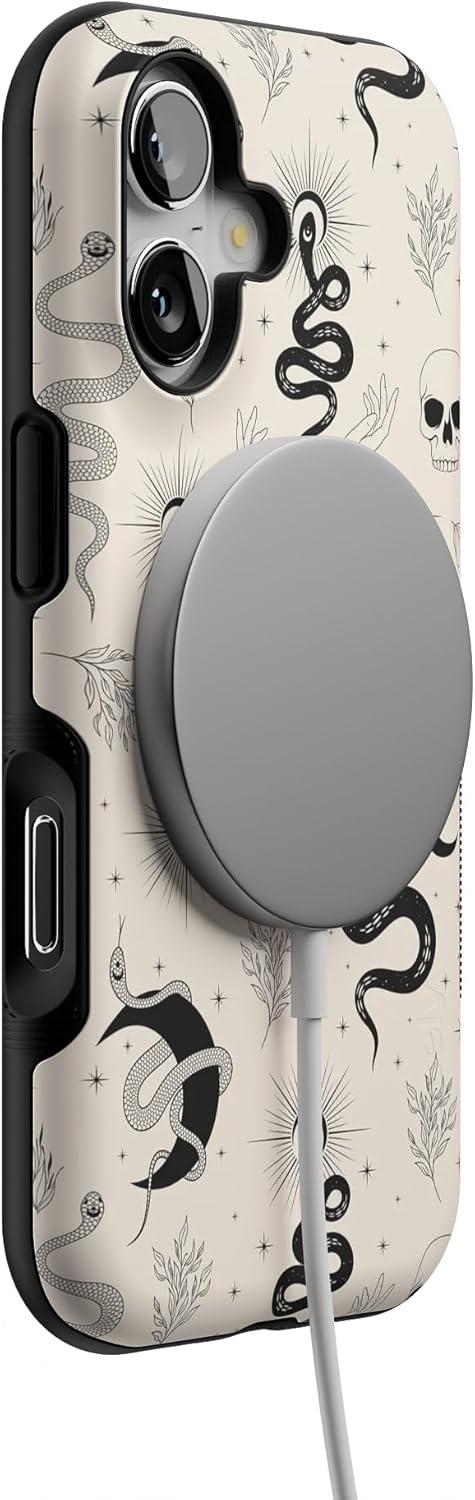 Casely iPhone 17 Case | Into The Wild | White Snow Leopard | Bold Protective Design | Compatible with MagSafe(No Further Explanation | Snakes & Skulls)