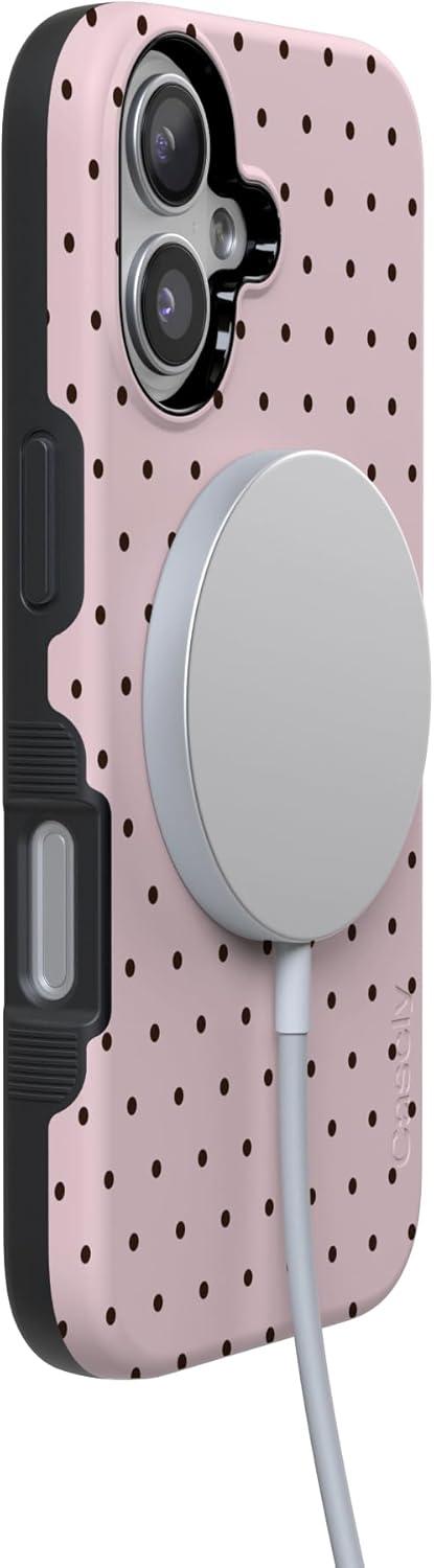 Casely iPhone 17 Case | Into The Wild | White Snow Leopard | Bold Protective Design | Compatible with MagSafe(On the Dot | Pink Polka Dot)