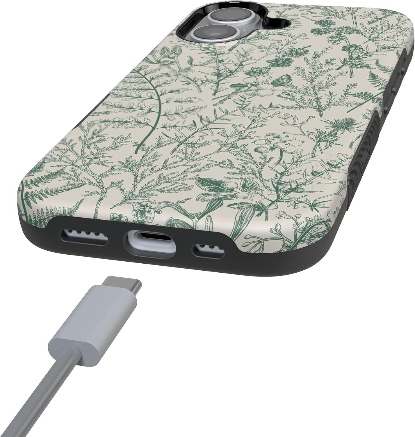 Casely iPhone 17 Case | Into The Wild | White Snow Leopard | Bold Protective Design | Compatible with MagSafe(Sage Garden | Green Floral)