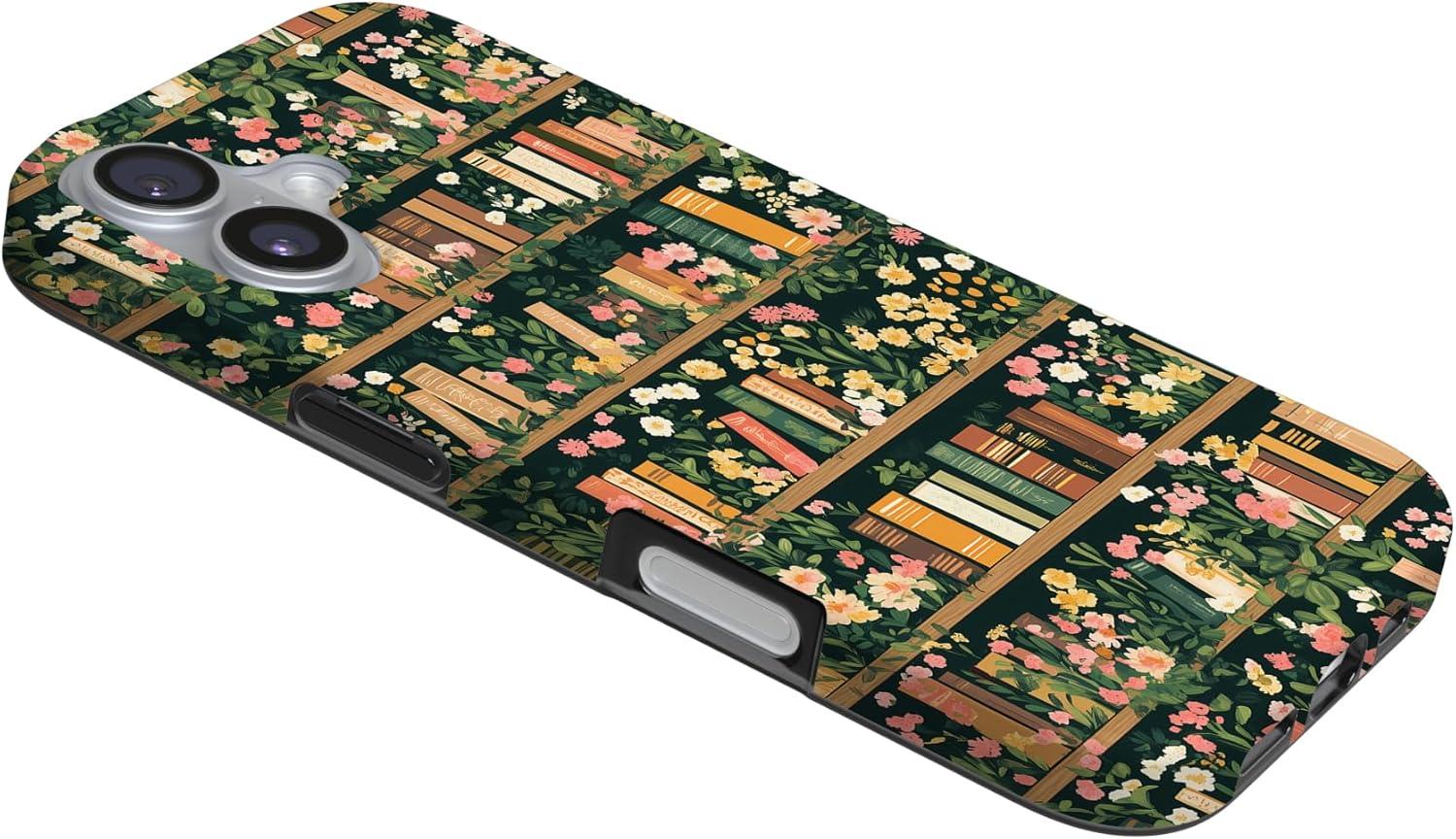 Casely iPhone 17 Case | Moody Monochrome | Bordeaux Rose | Compatible with MagSafe | Classic Ultra Thin Design(Book Nook | Floral Library)