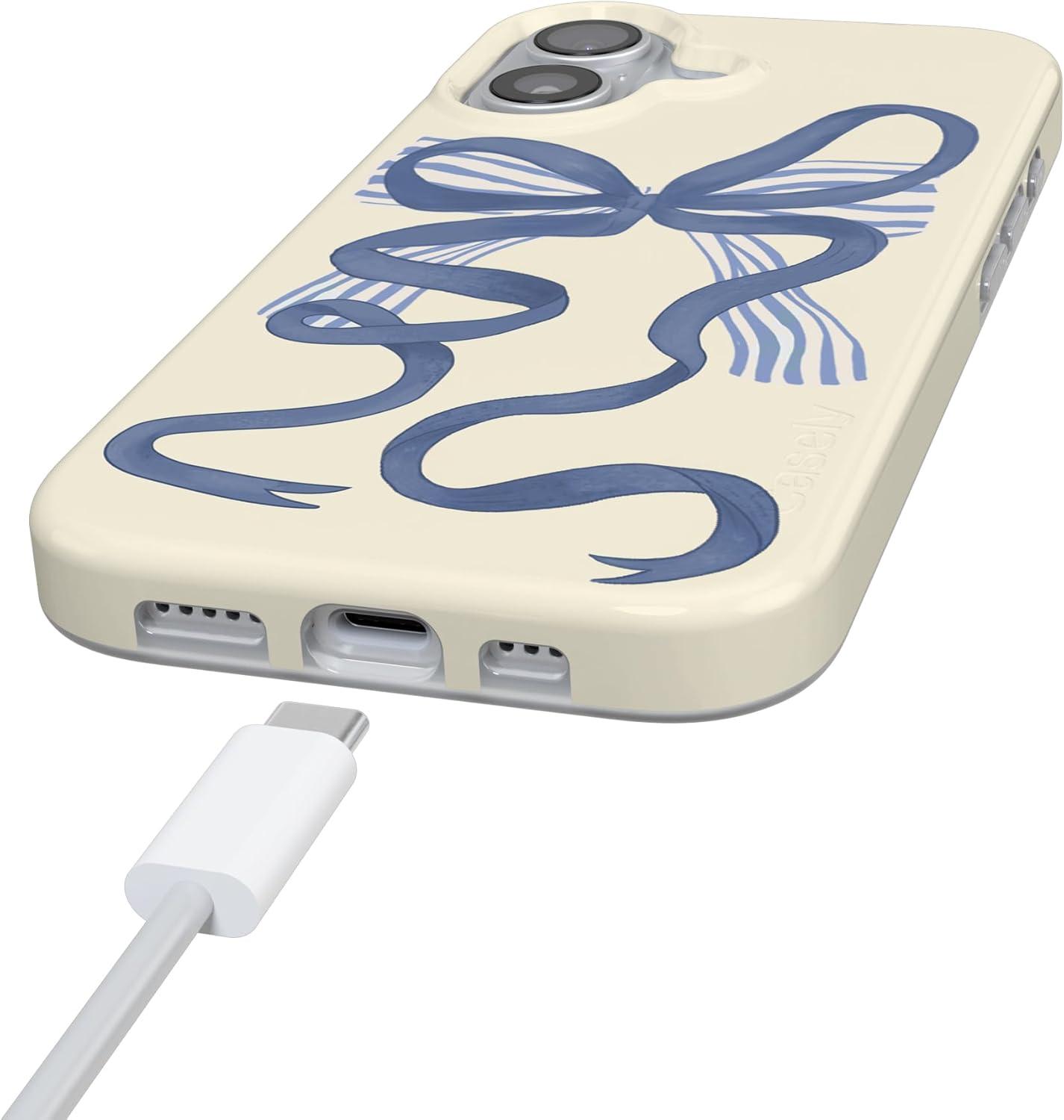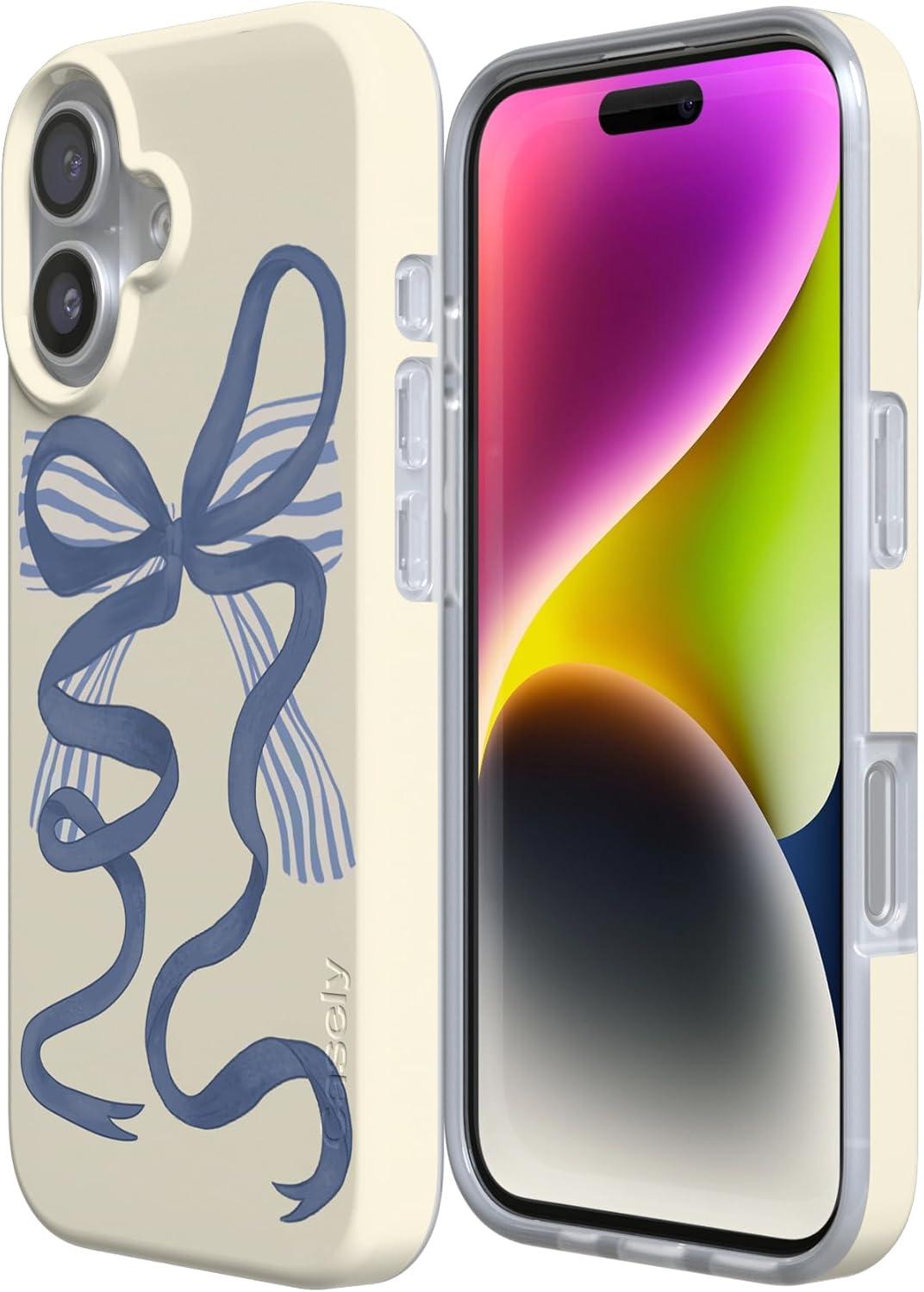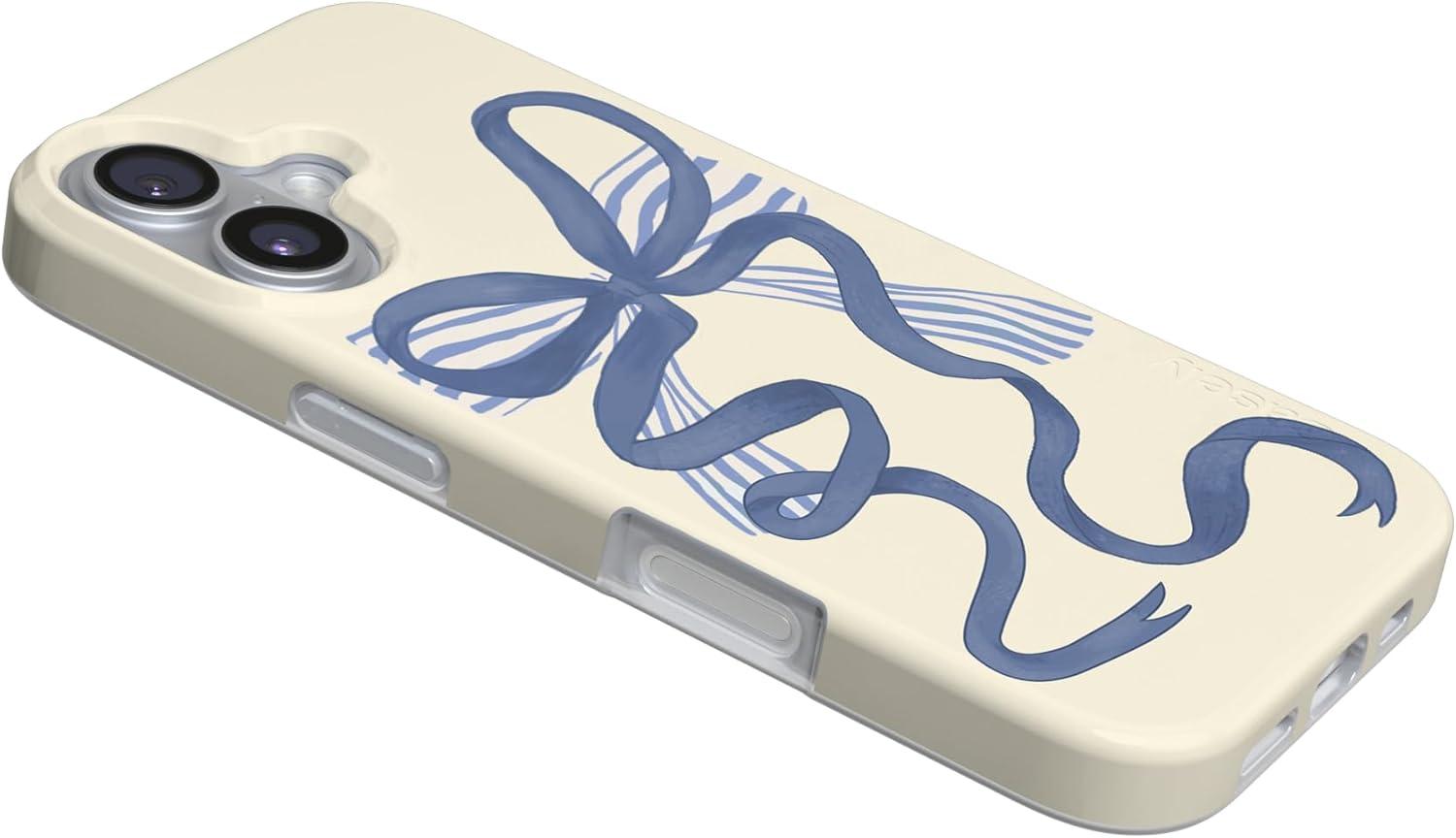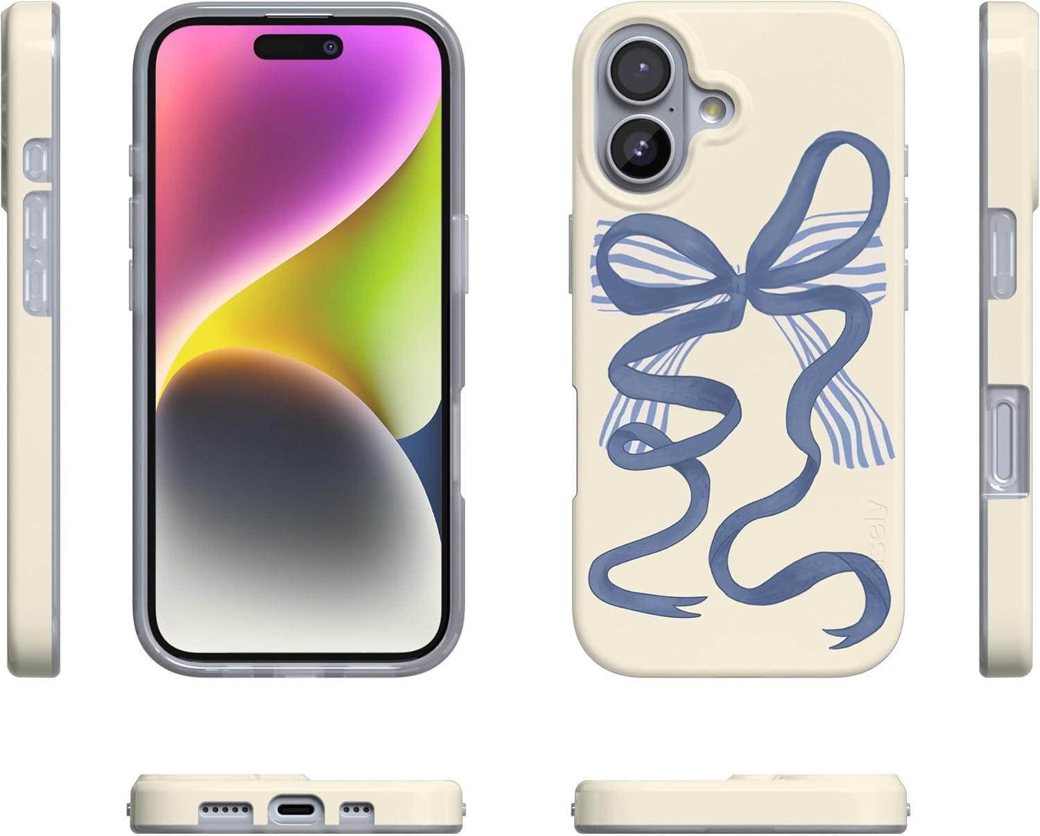 Casely iPhone 17 Case | Moody Monochrome | Bordeaux Rose | Compatible with MagSafe | Classic Ultra Thin Design(Heartstrings | Blue Bow)