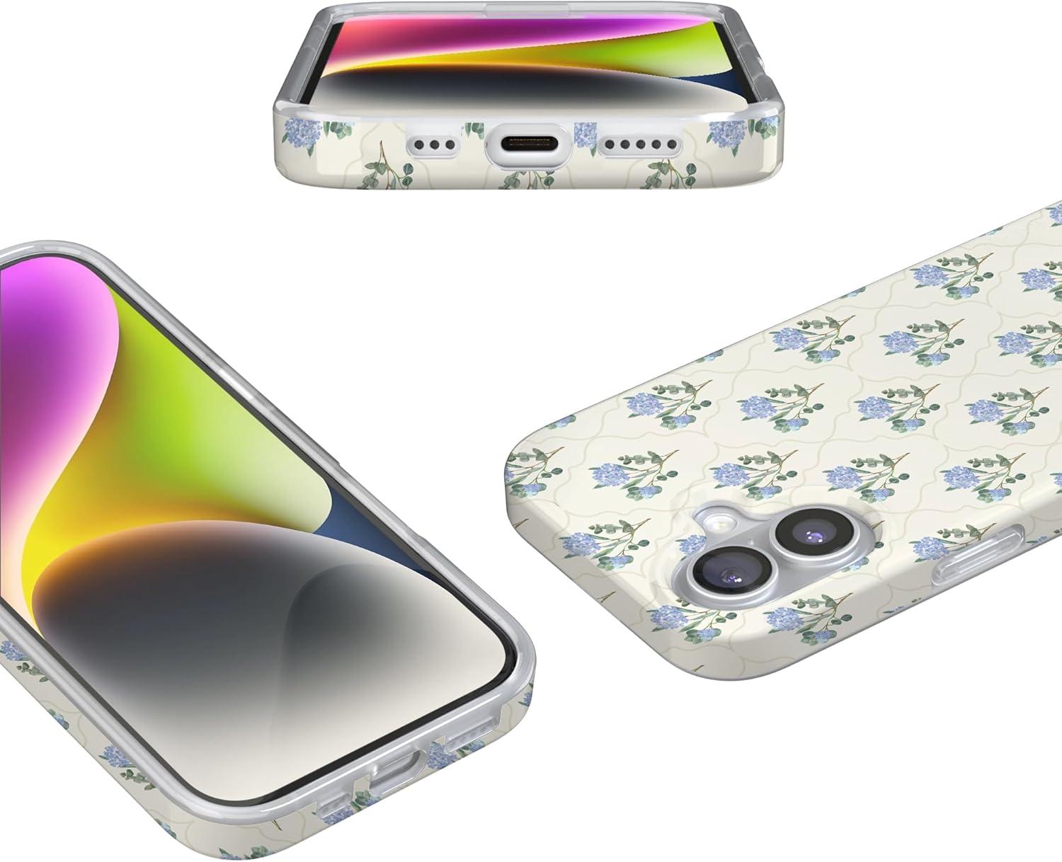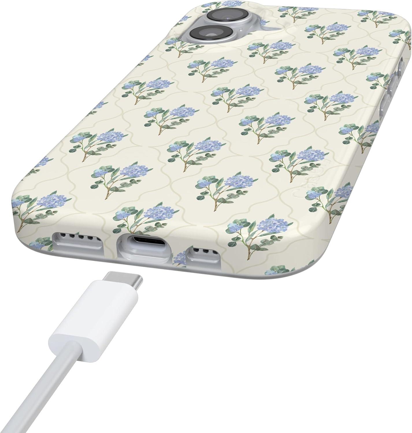 Casely iPhone 17 Case | Moody Monochrome | Bordeaux Rose | Compatible with MagSafe | Classic Ultra Thin Design(Vintage Garden | Blue Hydrangea)