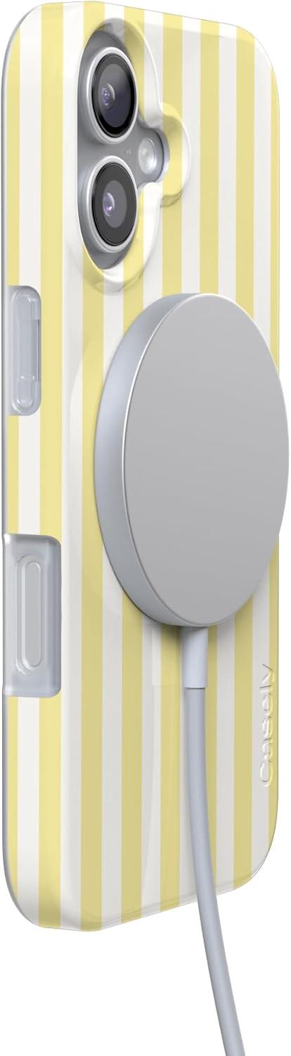 Casely iPhone 17 Case | Powder Pups | Dog Sled | Compatible with MagSafe | Classic Ultra Thin Design(Butter Yellow Stripes | Sunday Best)