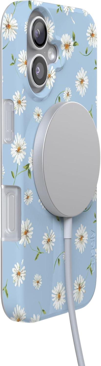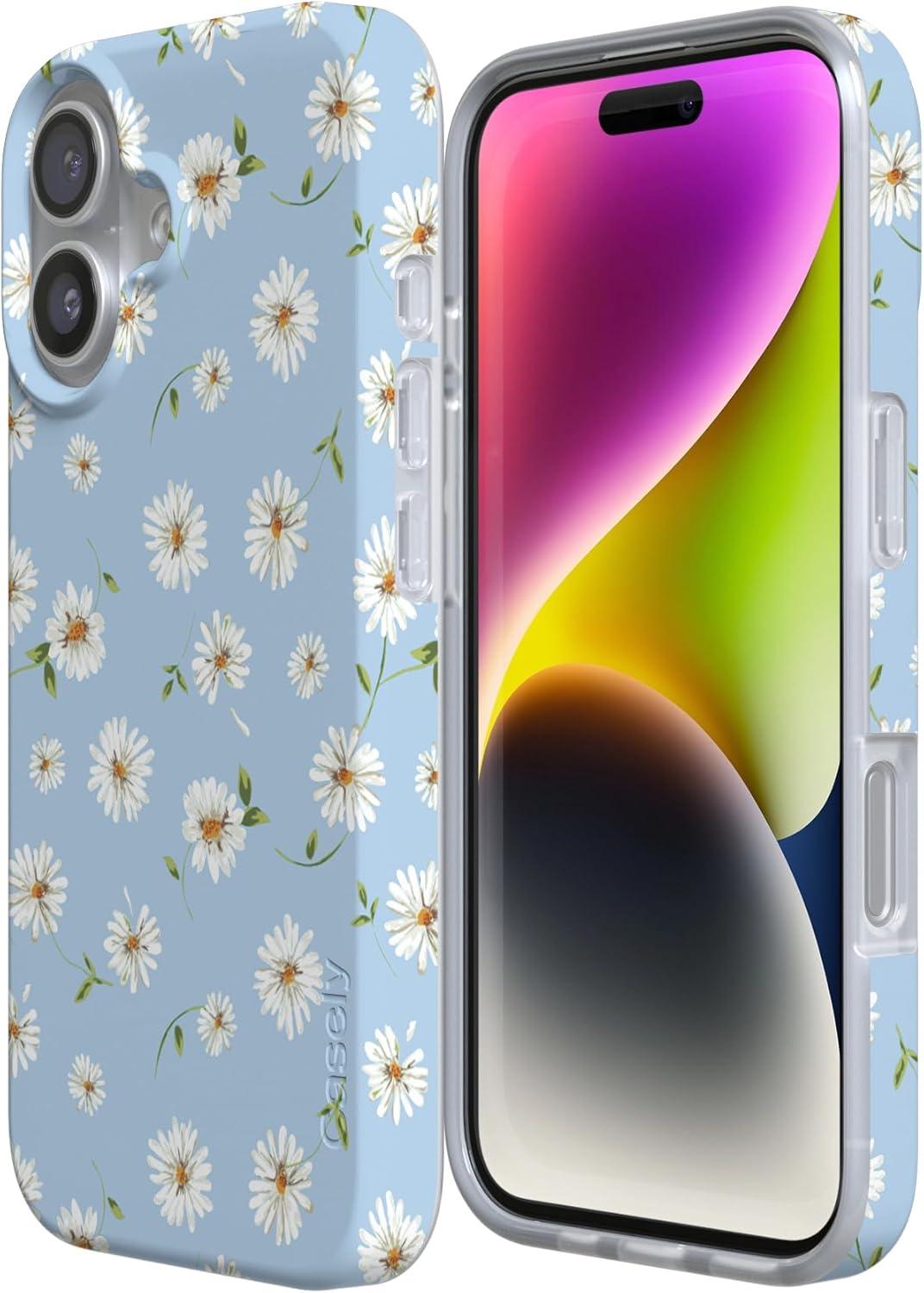 Casely iPhone 17 Case | Powder Pups | Dog Sled | Compatible with MagSafe | Classic Ultra Thin Design(Daisy Daydream | Baby Blue Floral)