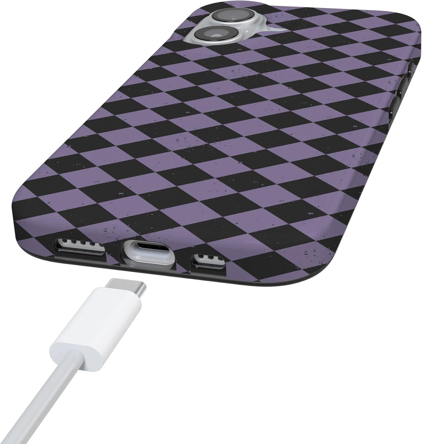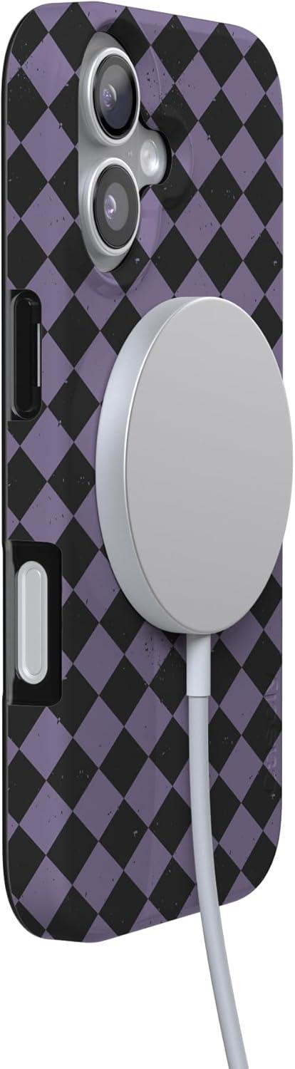 Casely iPhone 17 Case | Powder Pups | Dog Sled | Compatible with MagSafe | Classic Ultra Thin Design(Harlequin Midnight Diamond | Black and Purple)