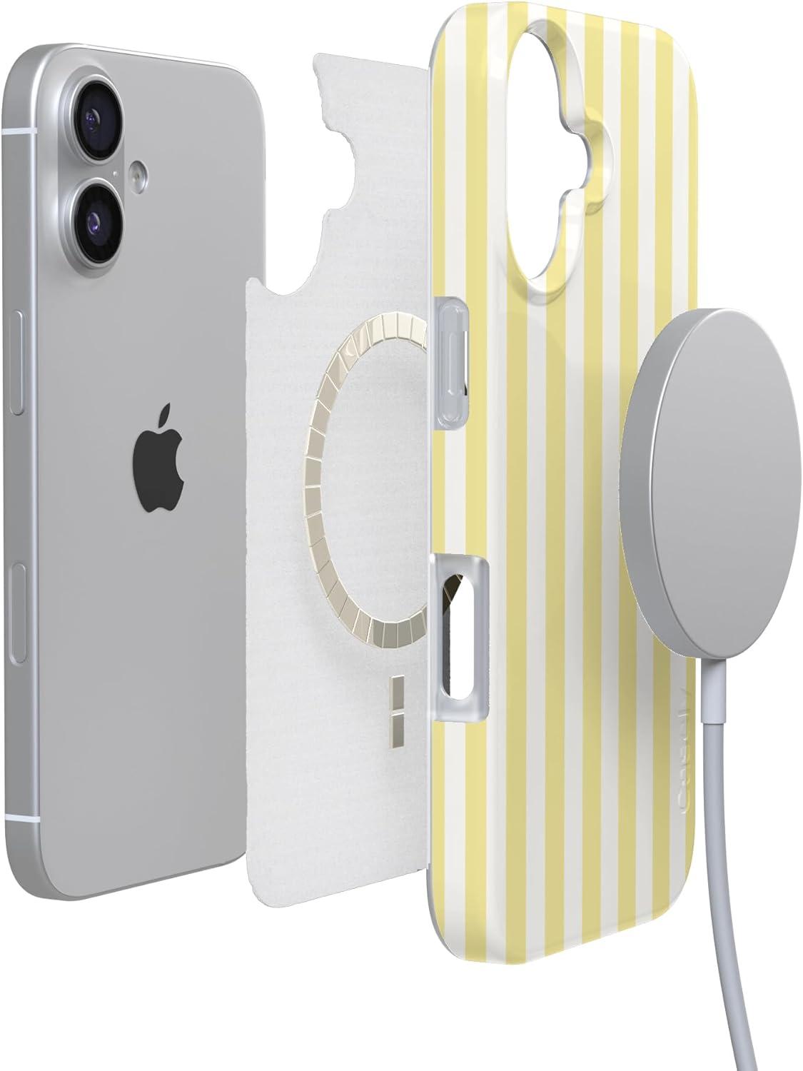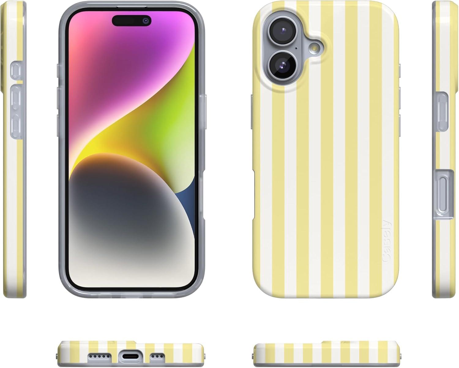 Casely iPhone 17 Case | Royal Flush | French Deck | Compatible with MagSafe | Classic Ultra Slim Design(Butter Yellow Stripes | Sunday Best)