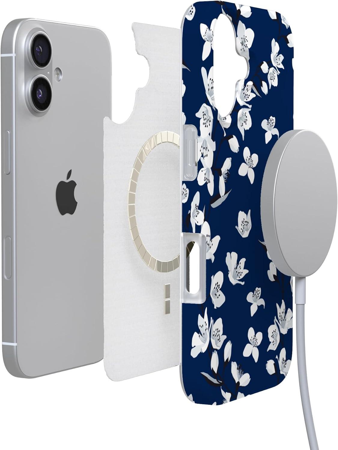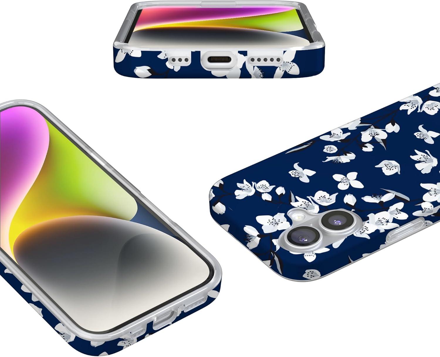 Casely iPhone 17 Case | Royal Flush | French Deck | Compatible with MagSafe | Classic Ultra Slim Design(Floral Forest | Navy Cherry Blossom Floral)