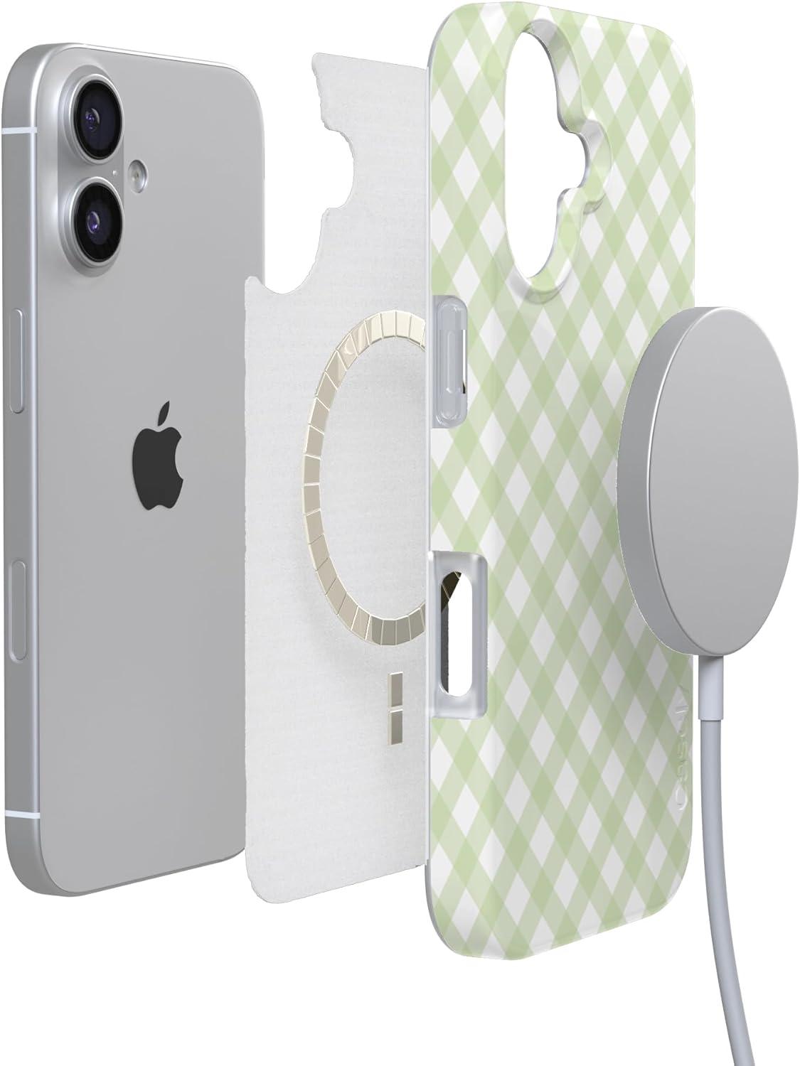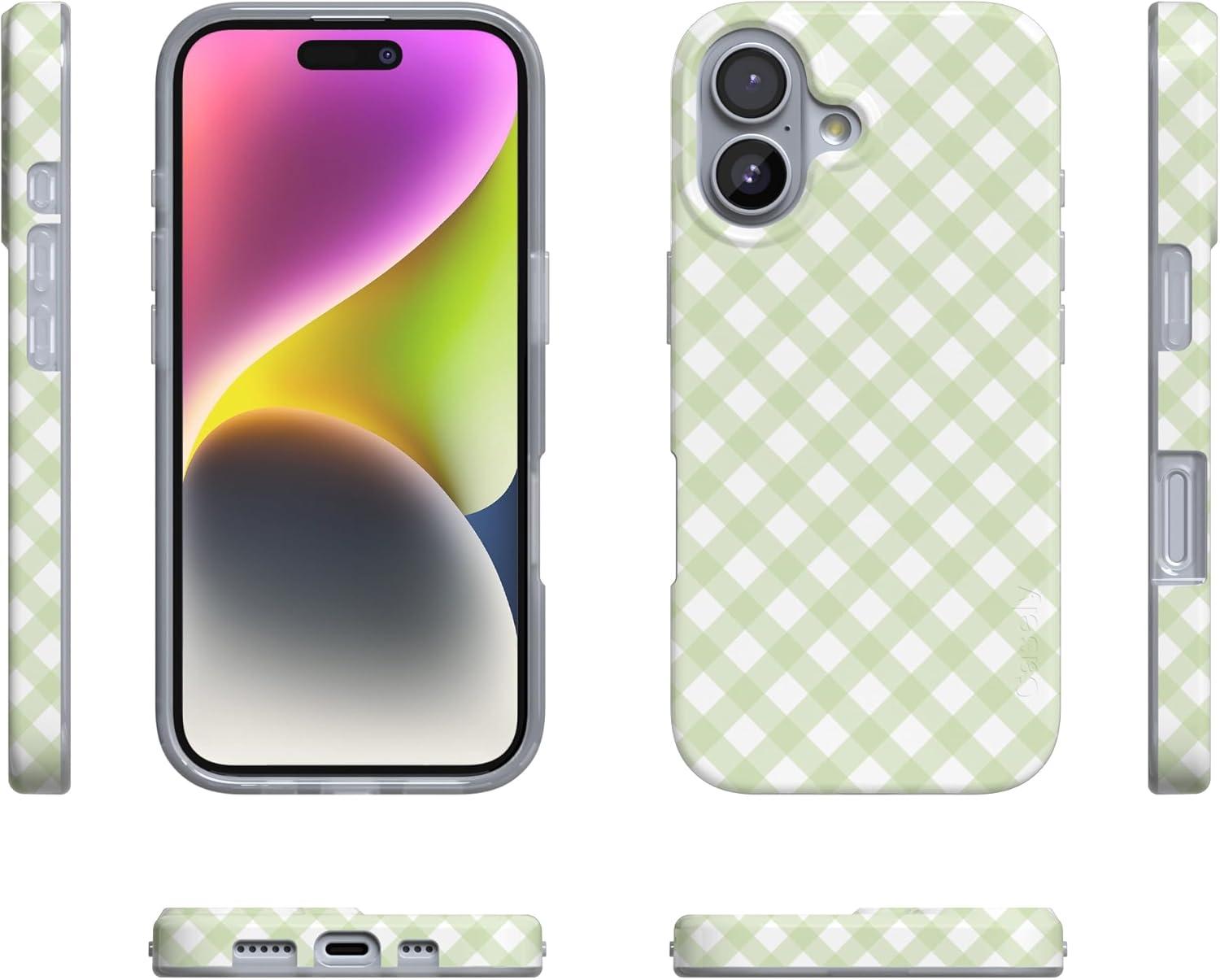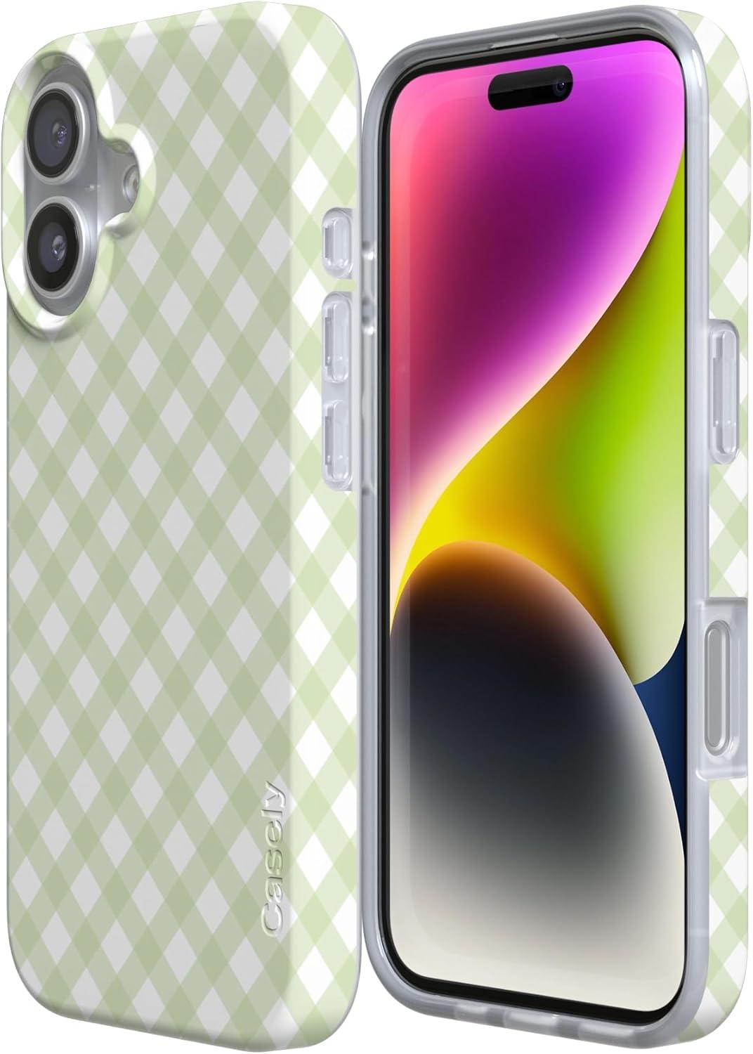 Casely iPhone 17 Air Case | Coastal Checkers | Pura Vida | Compatible with MagSafe | Classic Ultra Slim Design(Checked Twice | Green Plaid)