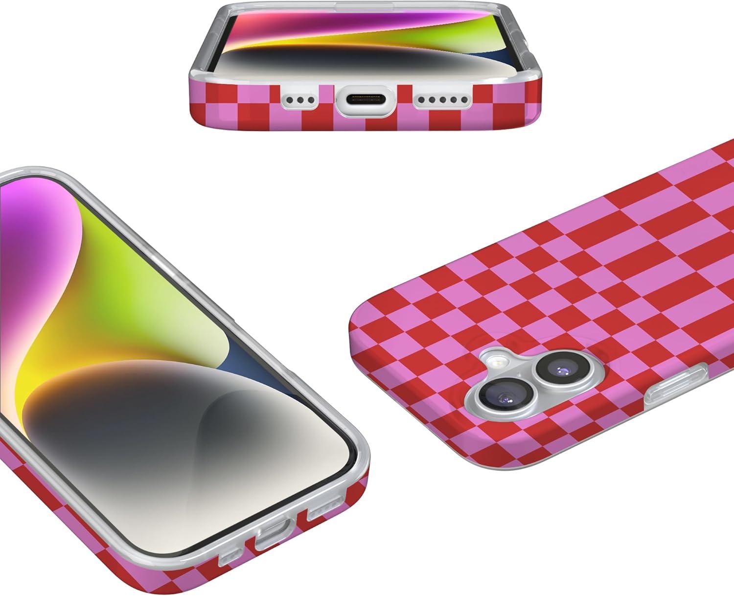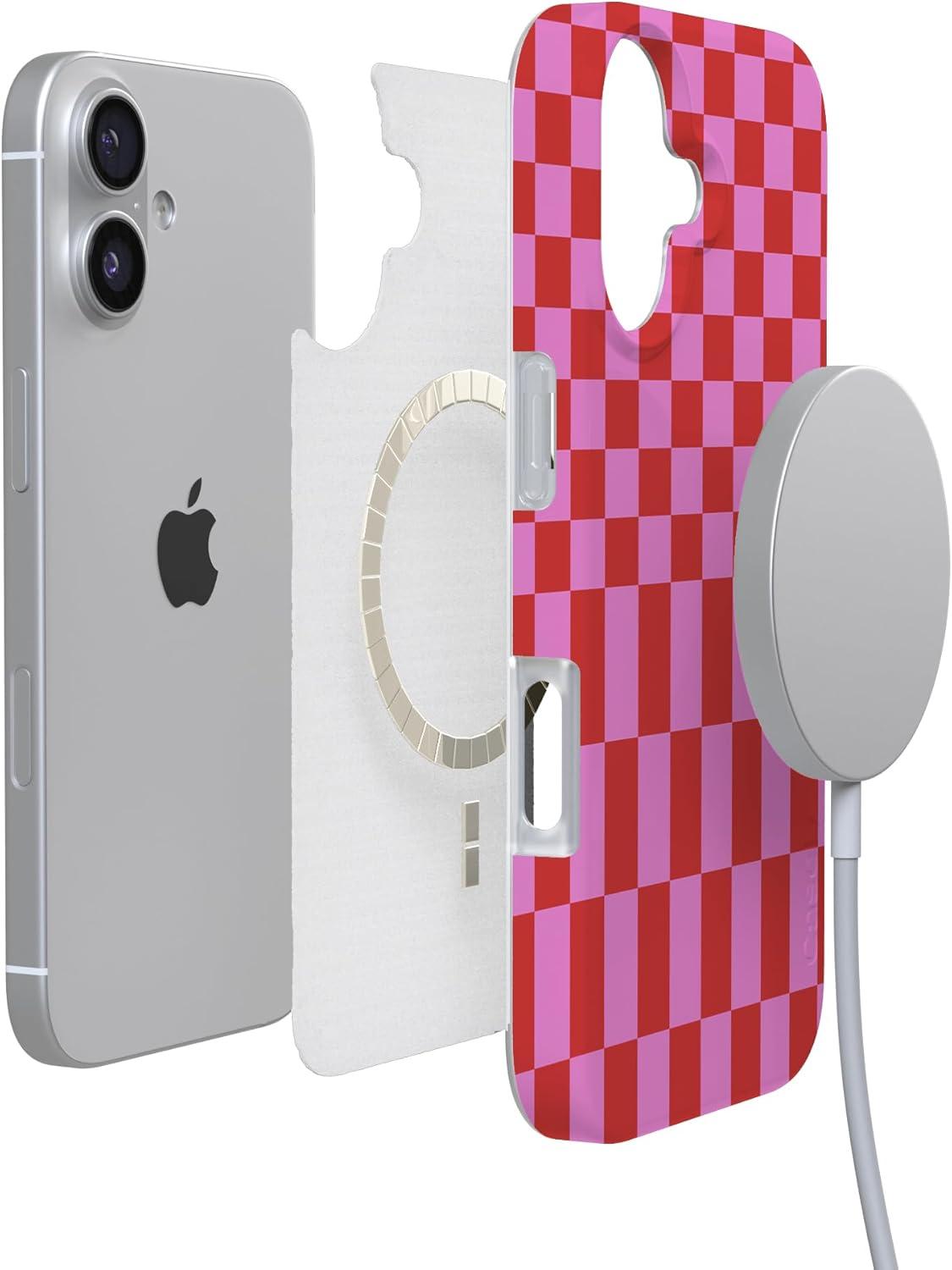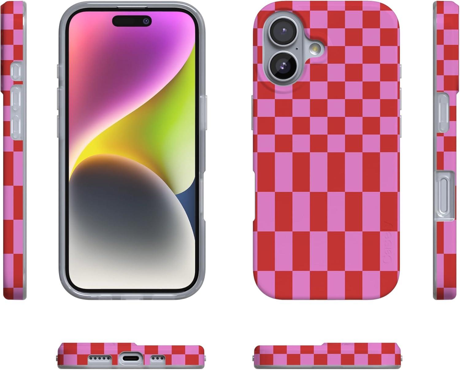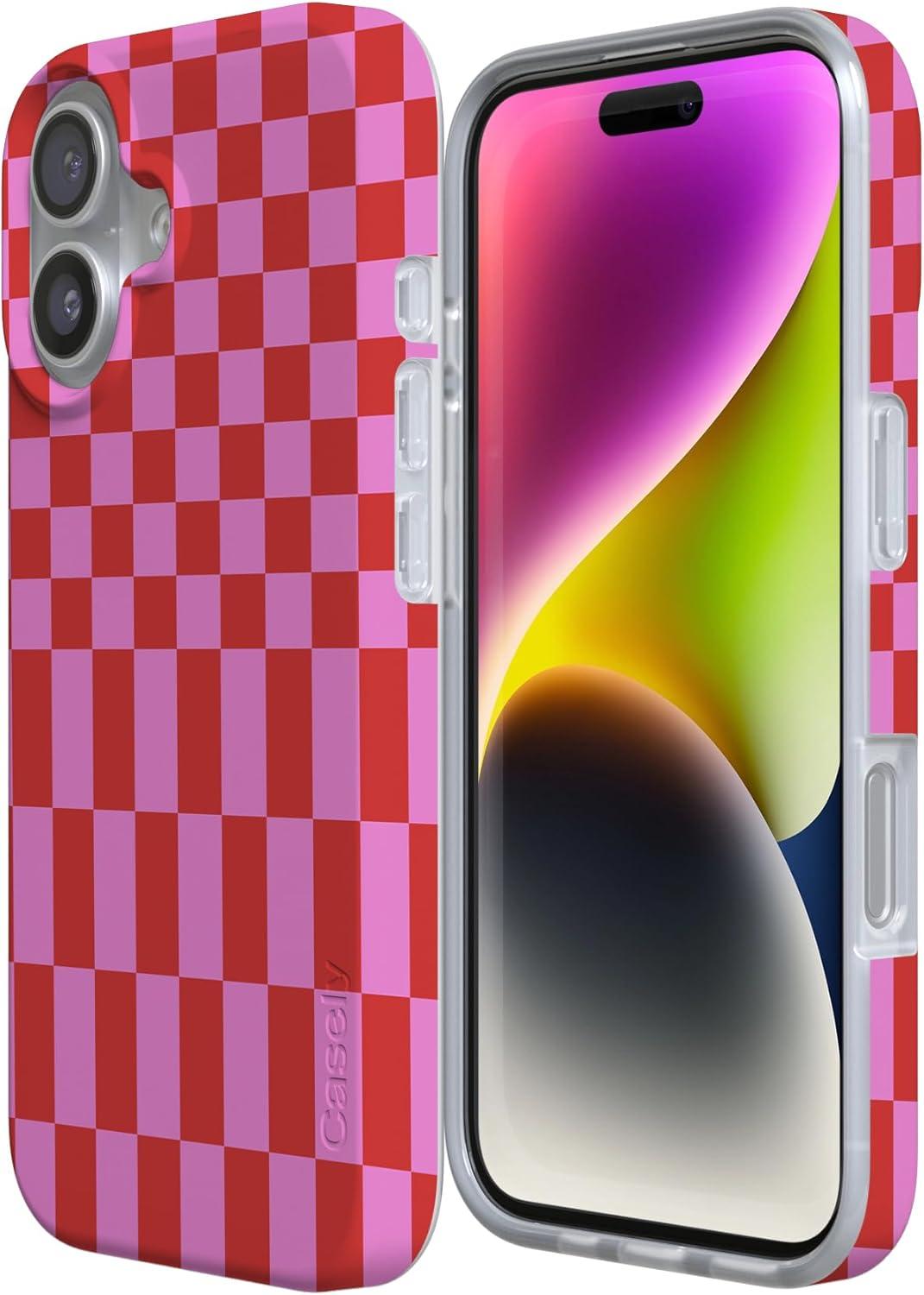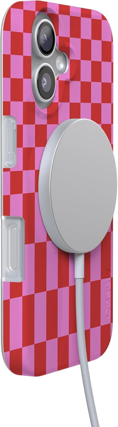Casely iPhone 17 Case | Royal Flush | French Deck | Compatible with MagSafe | Classic Ultra Slim Design(Vibe Check | Pink Checkerboard)