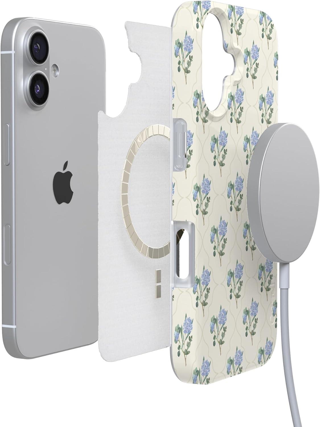 Casely iPhone 17 Case | Royal Flush | French Deck | Compatible with MagSafe | Classic Ultra Slim Design(Vintage Garden | Blue Hydrangea)