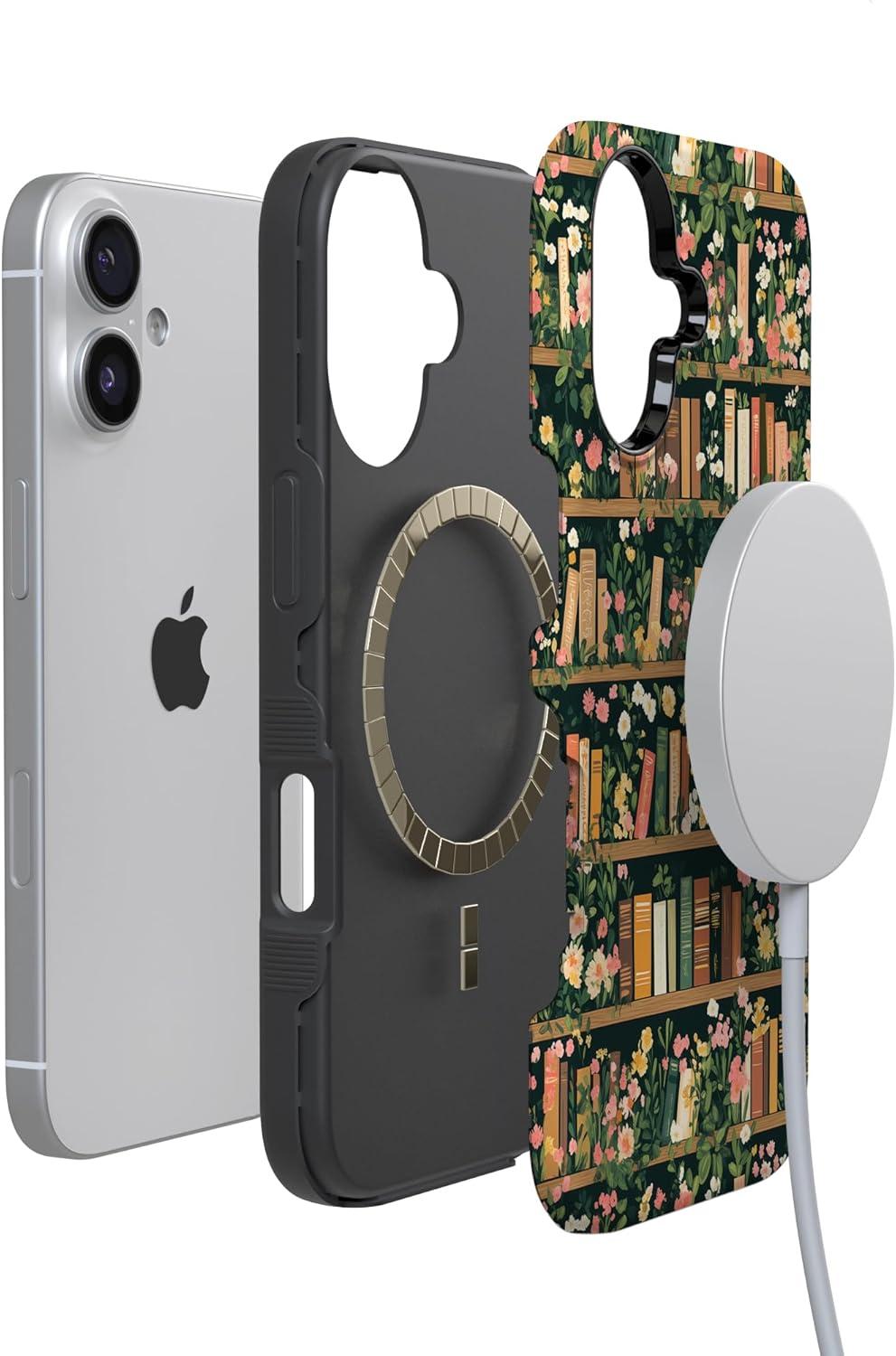Casely iPhone 17 Case | Spot On | Dotted Animal Print | Bold Protective Design | Compatible with MagSafe(Book Nook | Floral Library)