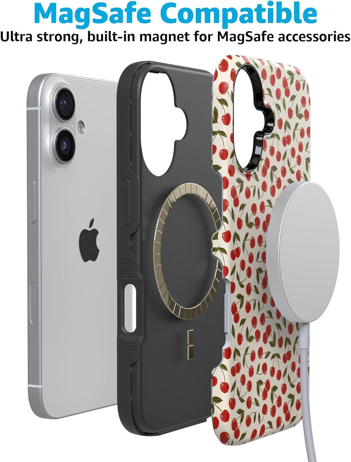 Casely iPhone 17 Case | Spot On | Dotted Animal Print | Bold Protective Design | Compatible with MagSafe(Cherry on Top | Red Cherries)