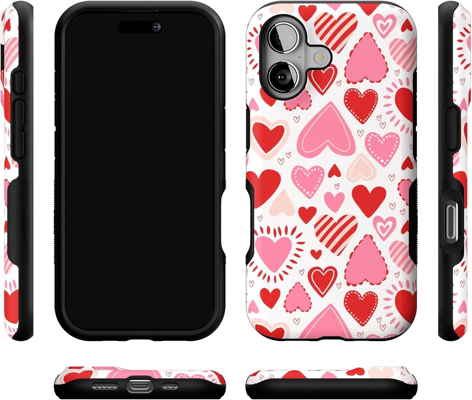 Casely iPhone 17 Case | Spot On | Dotted Animal Print | Bold Protective Design | Compatible with MagSafe(Love Struck | Heart Stickers)