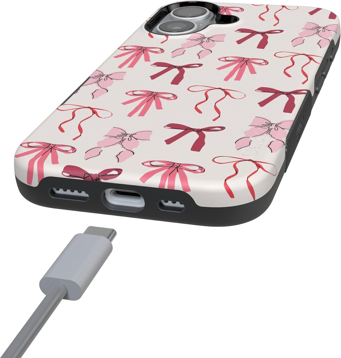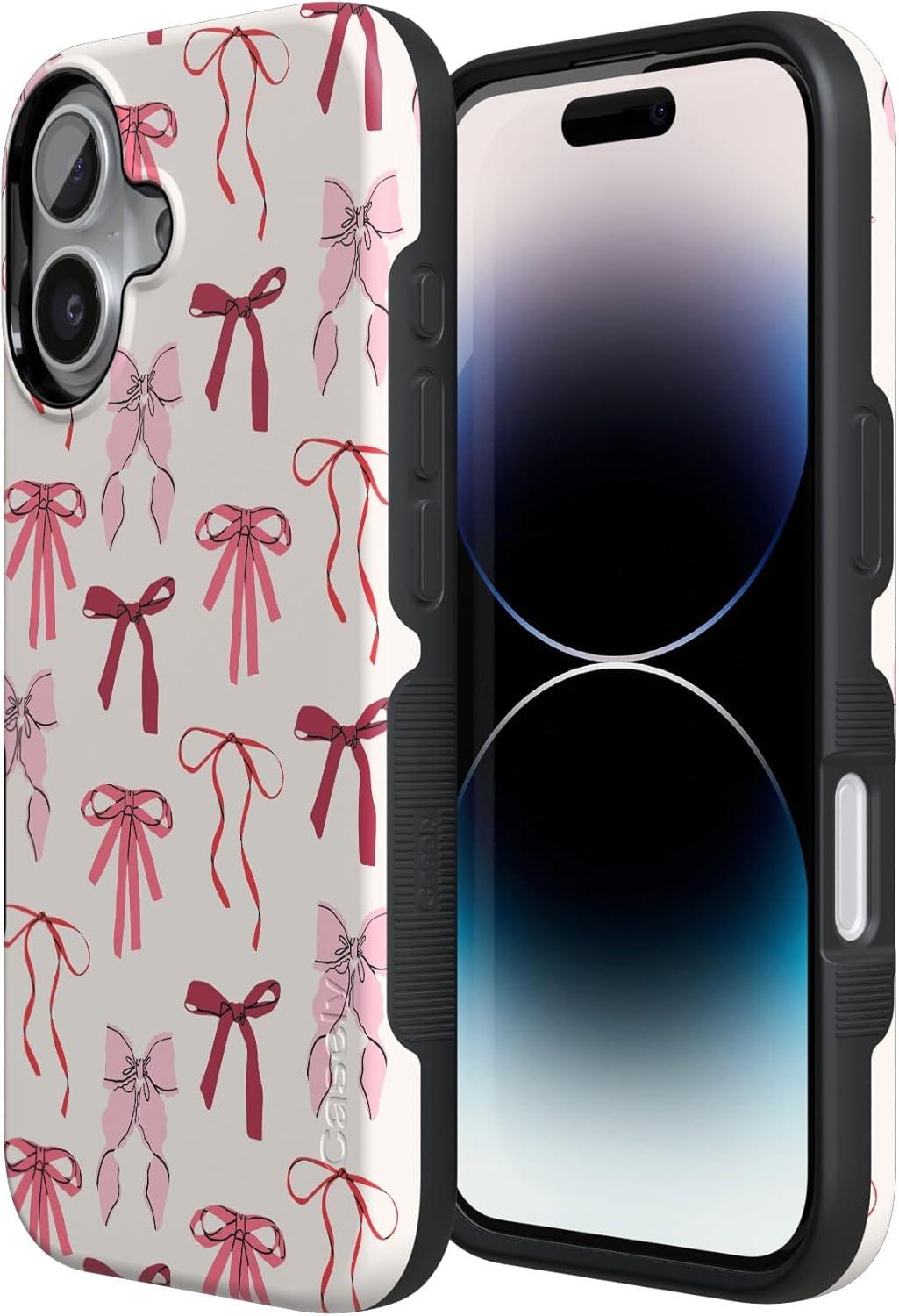 Casely iPhone 17 Case | Spot On | Dotted Animal Print | Bold Protective Design | Compatible with MagSafe(Lover Girlie | Pink Bows)