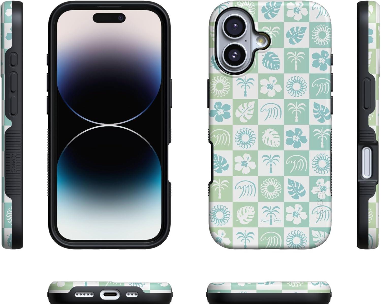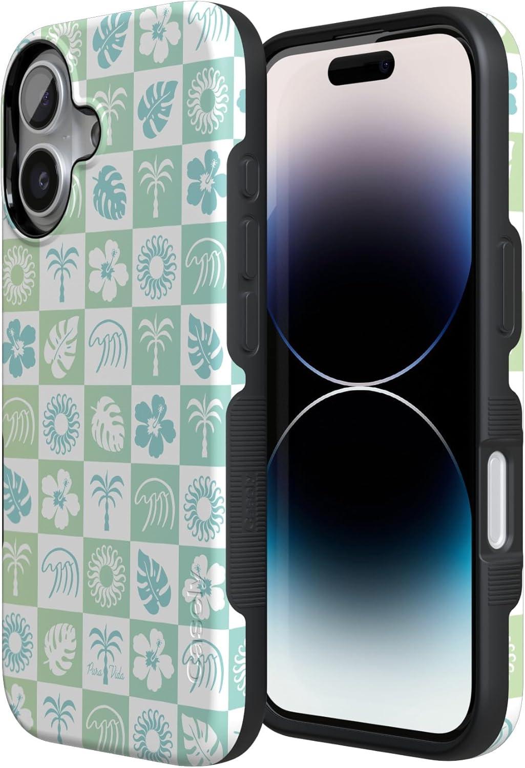 Casely iPhone 17 Case | Spot On | Dotted Animal Print | Bold Protective Design | Compatible with MagSafe(Pura Vida | Coastal Checkers)