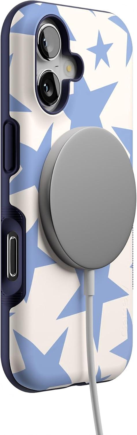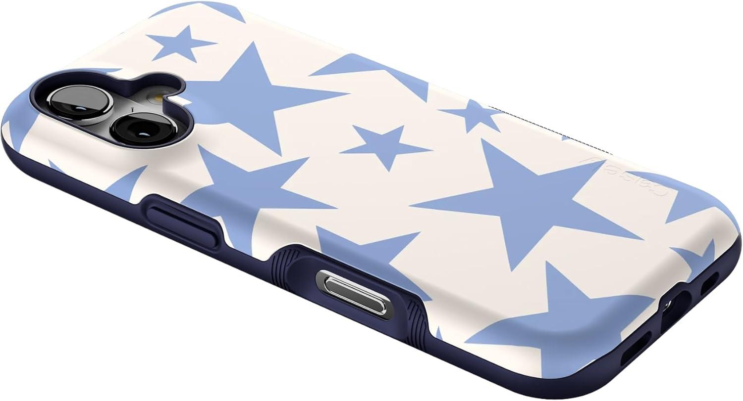 Casely iPhone 17 Case | Spot On | Dotted Animal Print | Bold Protective Design | Compatible with MagSafe(Stars Align | Blue & White Stars)