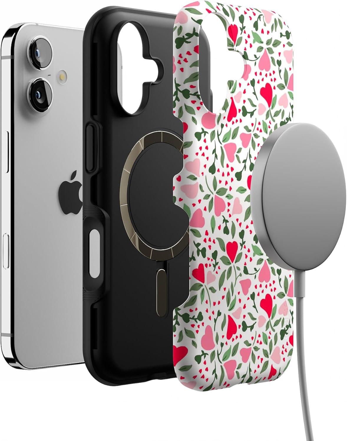 Casely iPhone 17 Case | Spot On | Dotted Animal Print | Bold Protective Design | Compatible with MagSafe(Vines of Love | Floral Heart)