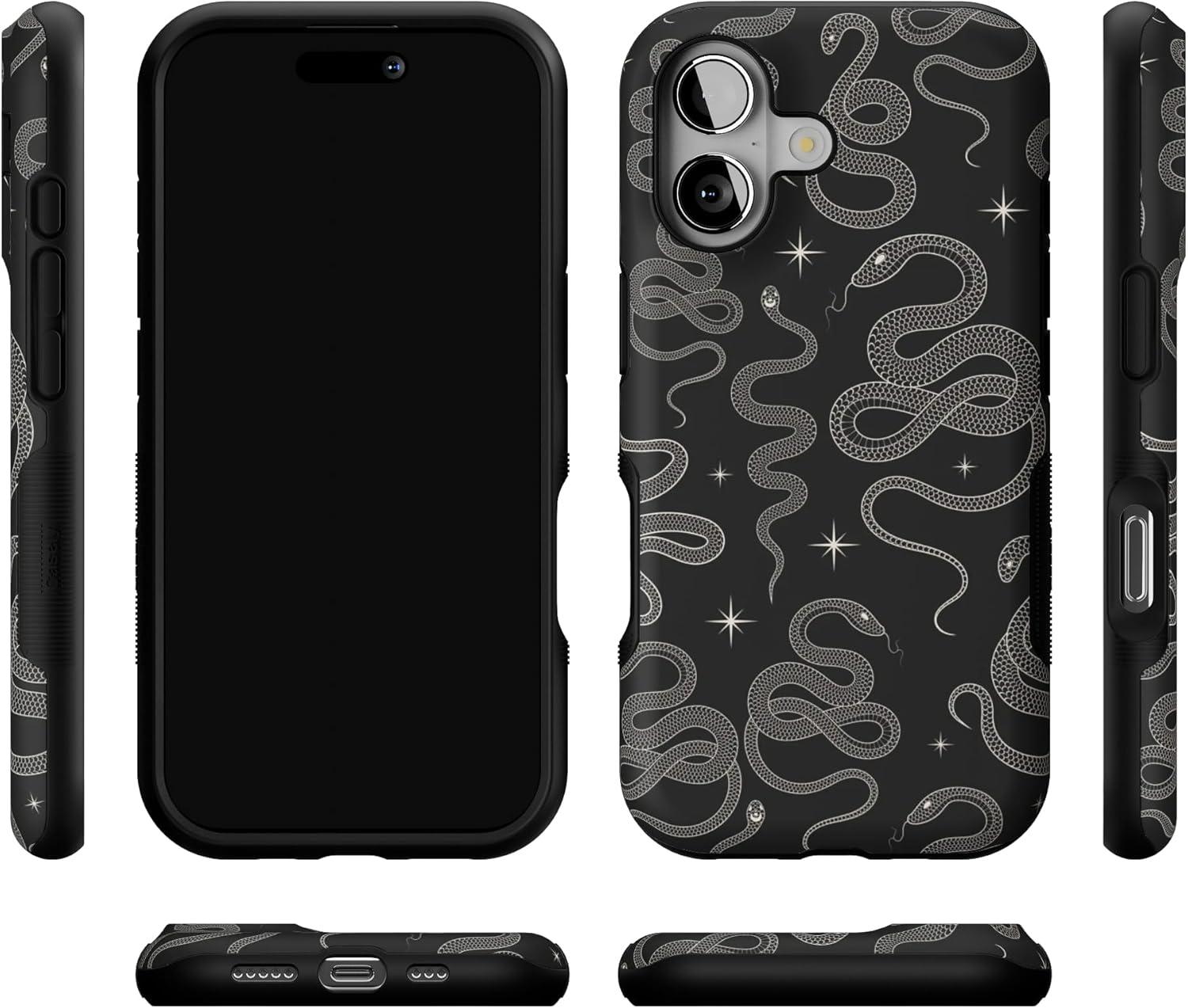 Casely iPhone 17 Case | Spot On | Dotted Animal Print | Bold Protective Design | Compatible with MagSafe(We’re Ready For It | Black Serpent)
