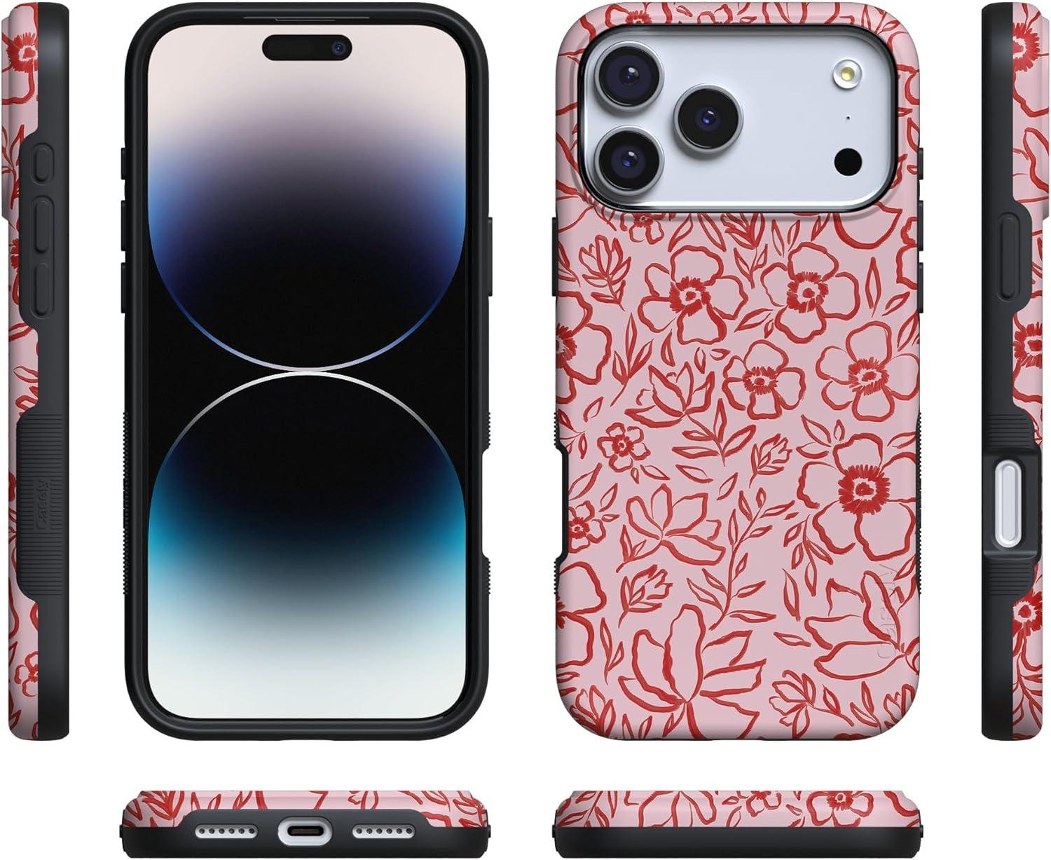 Casely iPhone 17 Pro Case | All Decked Out | Festive Ornaments | Bold Protective Design | Compatible with MagSafe(Blush Garden | Floral Doodle)
