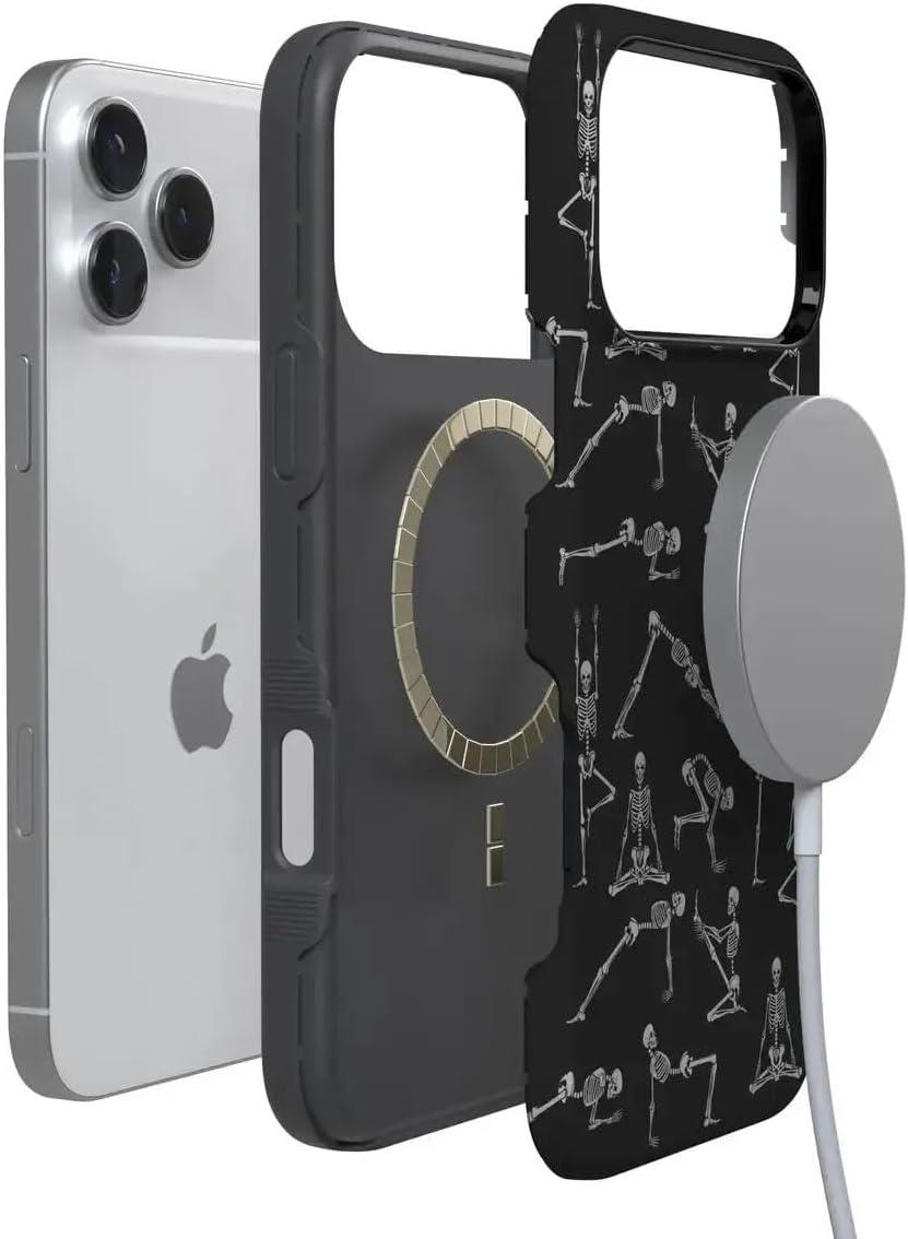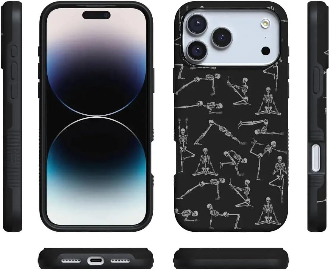 Casely iPhone 17 Pro Case | All Decked Out | Festive Ornaments | Bold Protective Design | Compatible with MagSafe(Corpse Pose | Skeleton Yoga)