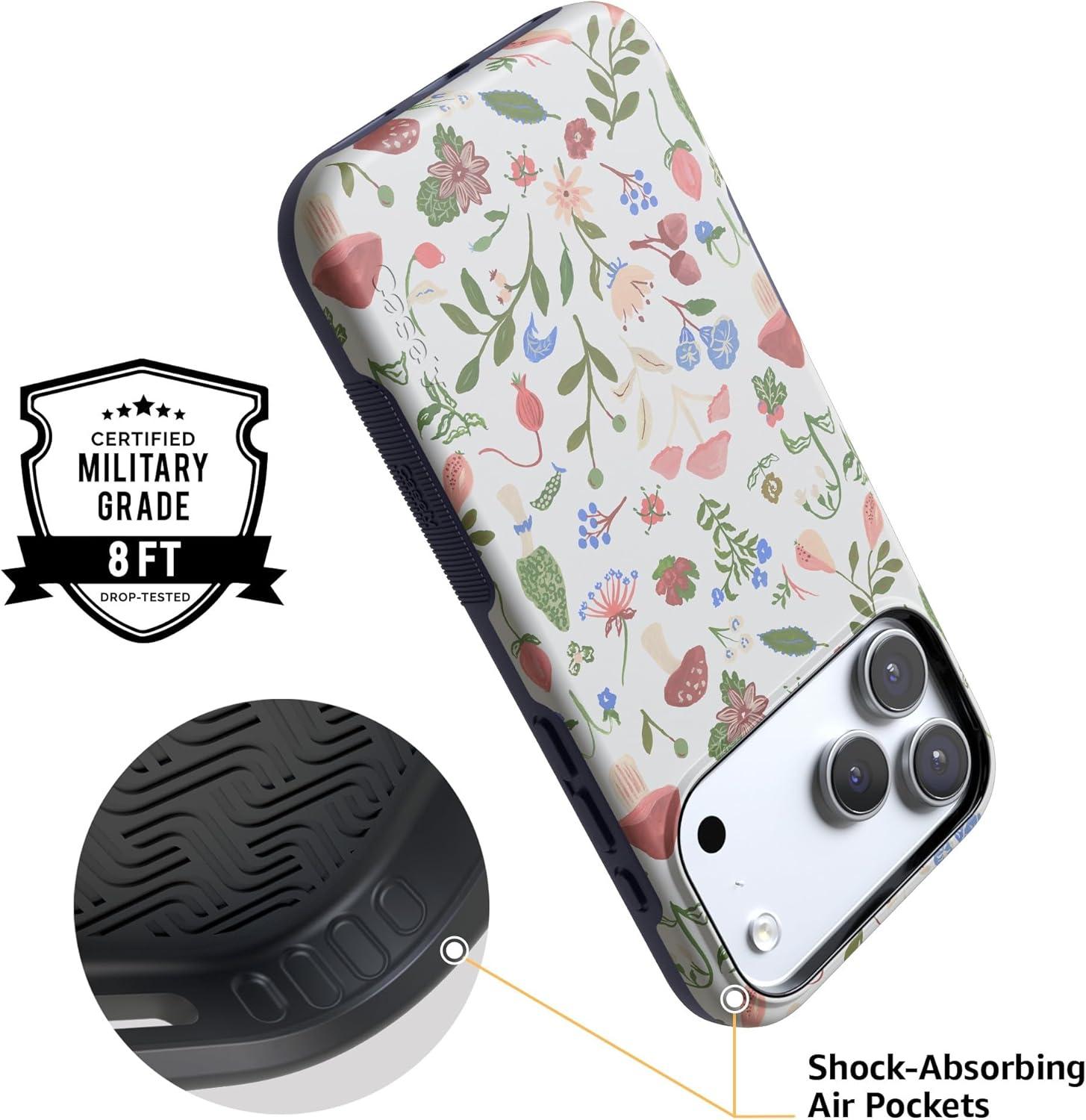 Casely iPhone 17 Pro Case | All Decked Out | Festive Ornaments | Bold Protective Design | Compatible with MagSafe(Garden Party | Mushroom Floral)