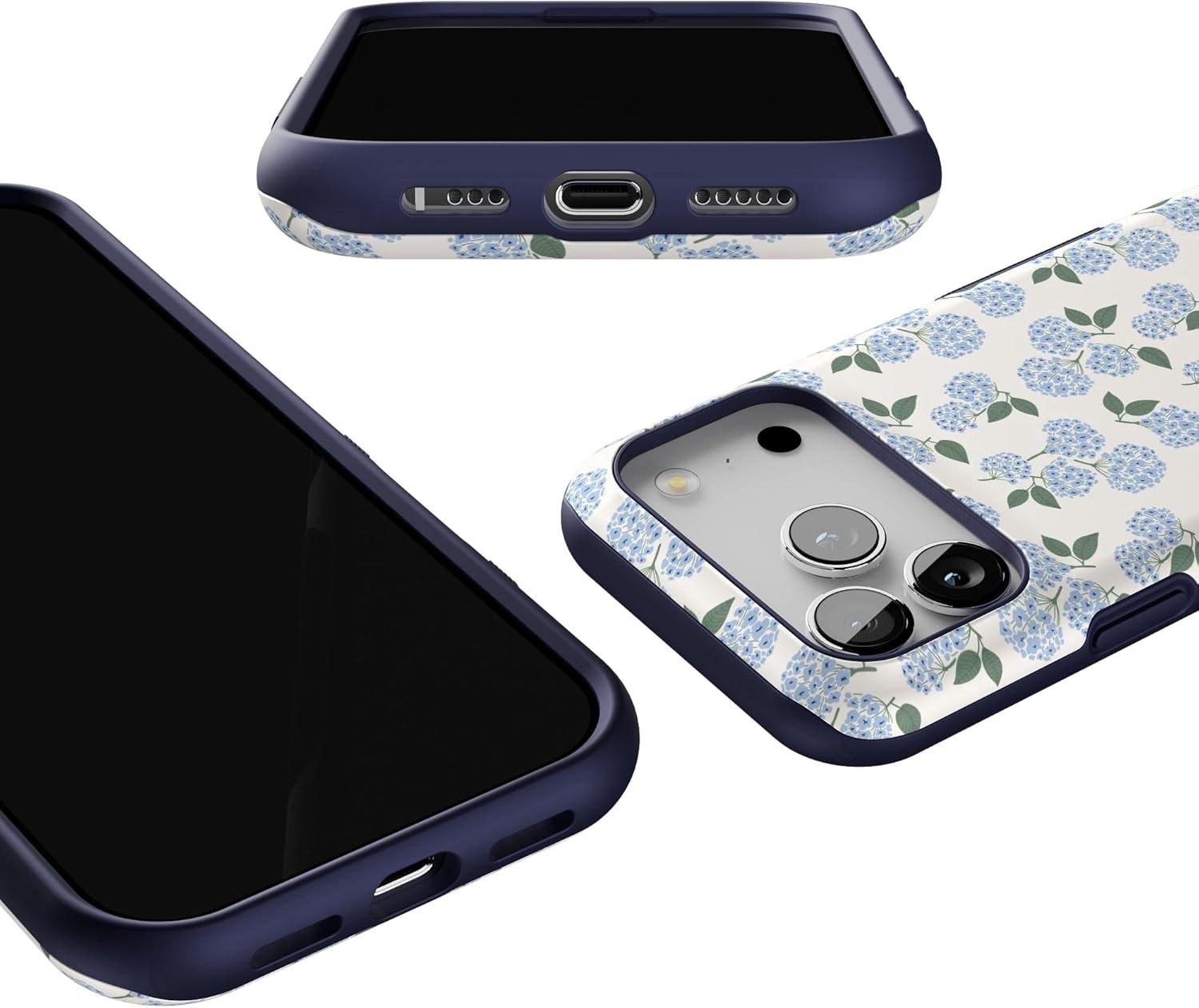 Casely iPhone 17 Pro Case | All Decked Out | Festive Ornaments | Bold Protective Design | Compatible with MagSafe(Nantucket Cottage | Blue Hydrangea)
