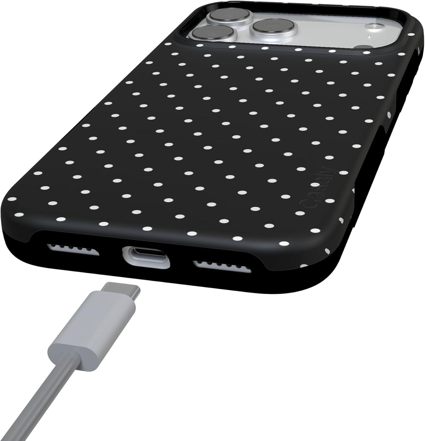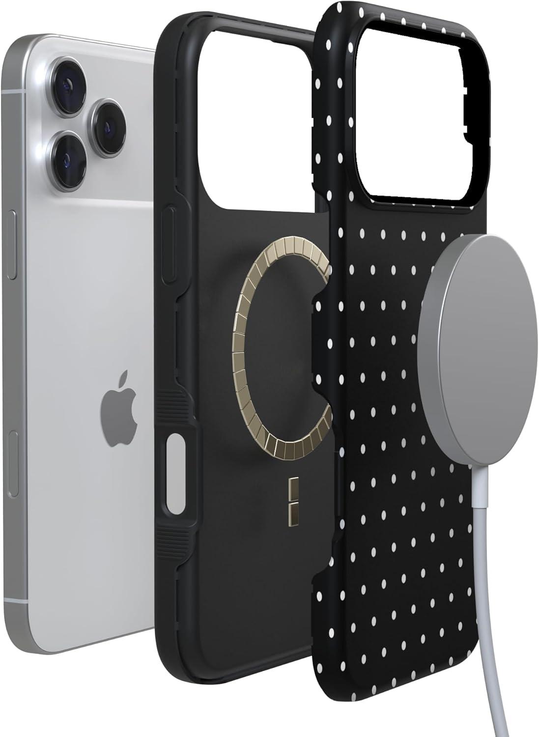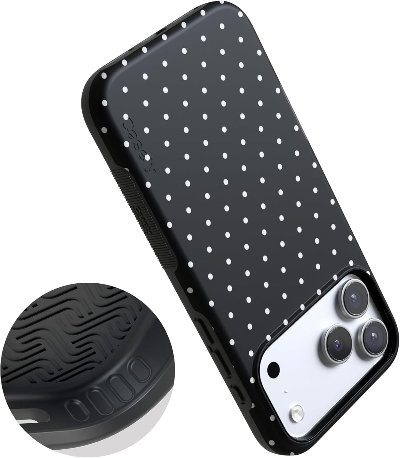 Casely iPhone 17 Pro Case | All Decked Out | Festive Ornaments | Bold Protective Design | Compatible with MagSafe(On the Dot | Black Polka Dot)