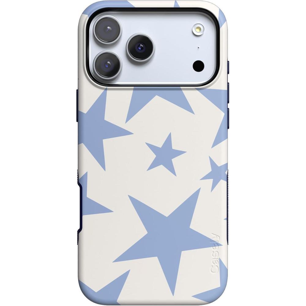 Casely iPhone 17 Pro Case | All Decked Out | Festive Ornaments | Bold Protective Design | Compatible with MagSafe(Stars Align | Blue & White Stars)