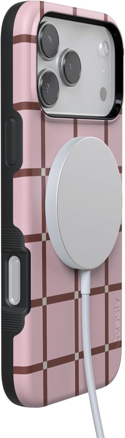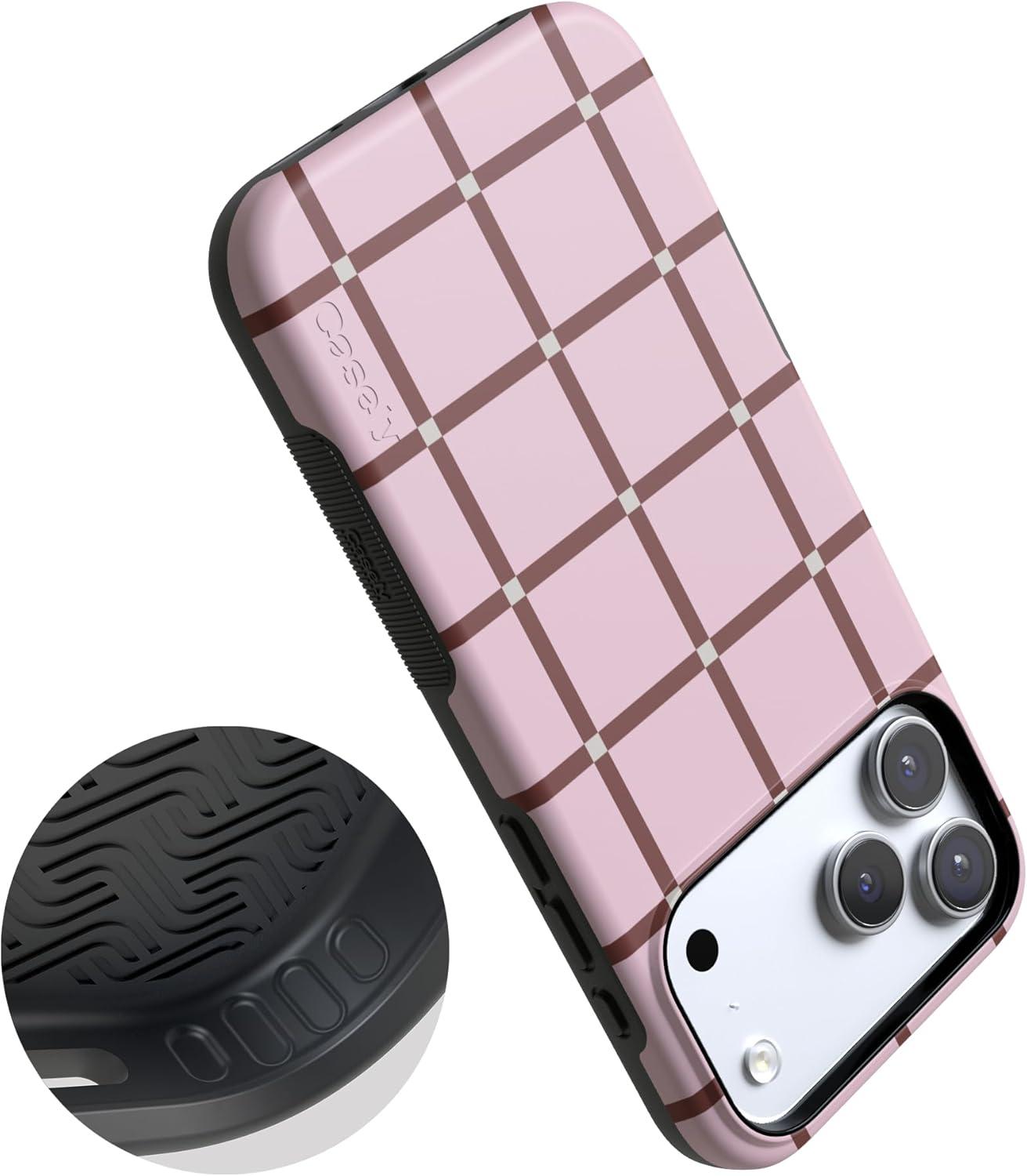 Casely iPhone 17 Pro Case | All Decked Out | Festive Ornaments | Bold Protective Design | Compatible with MagSafe(Uptown Gridlock | Pink Checkerboard)