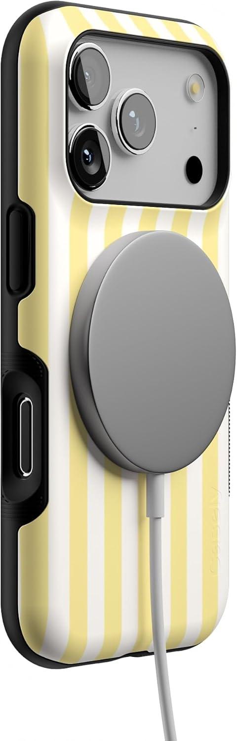 Casely iPhone 17 Pro Case | Be Mine | Tiny Hearts | Bold Protective Design | Compatible with MagSafe(Butter Yellow Stripes | Sunday Best)